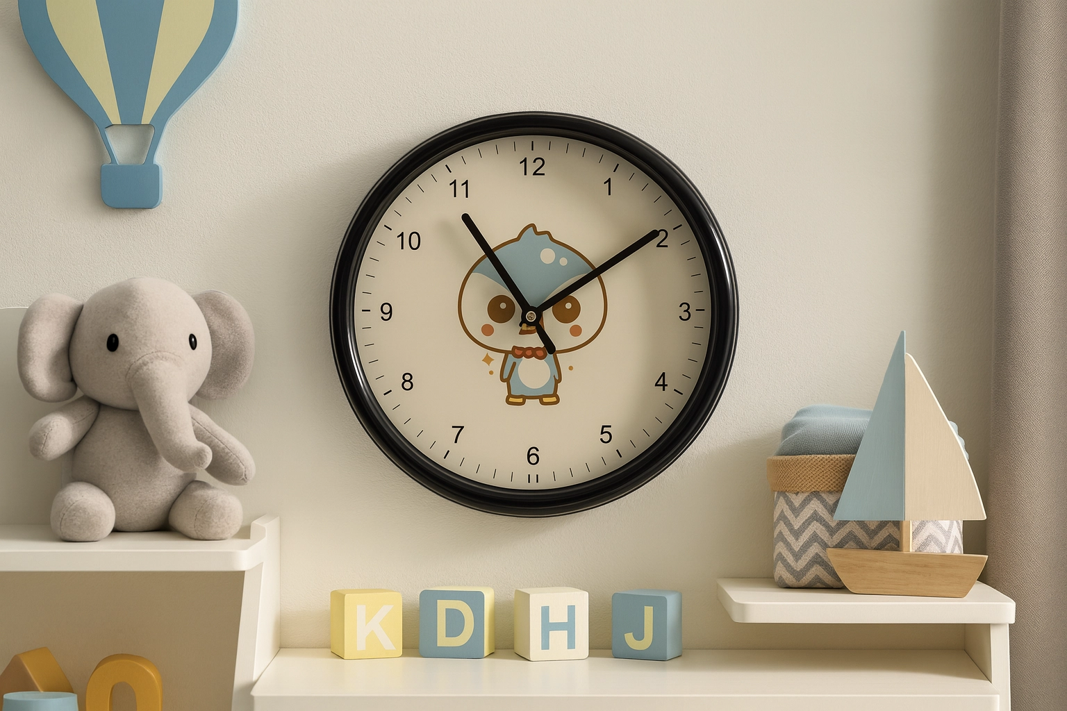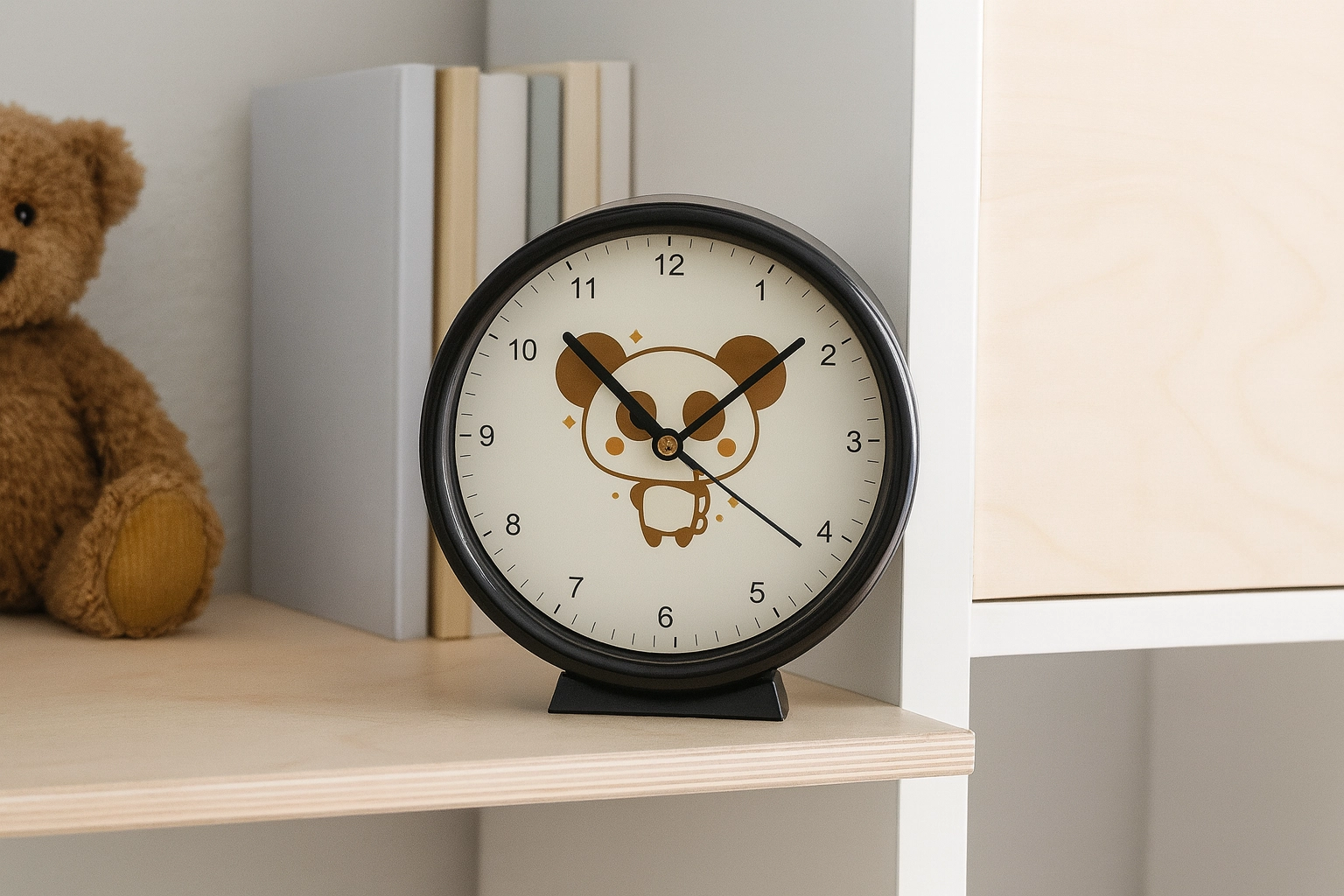 Játékos dizájn mackóval, cicával vagy pandával, amely beragyogja a gyerekszobát és motivál az időtanulásra.