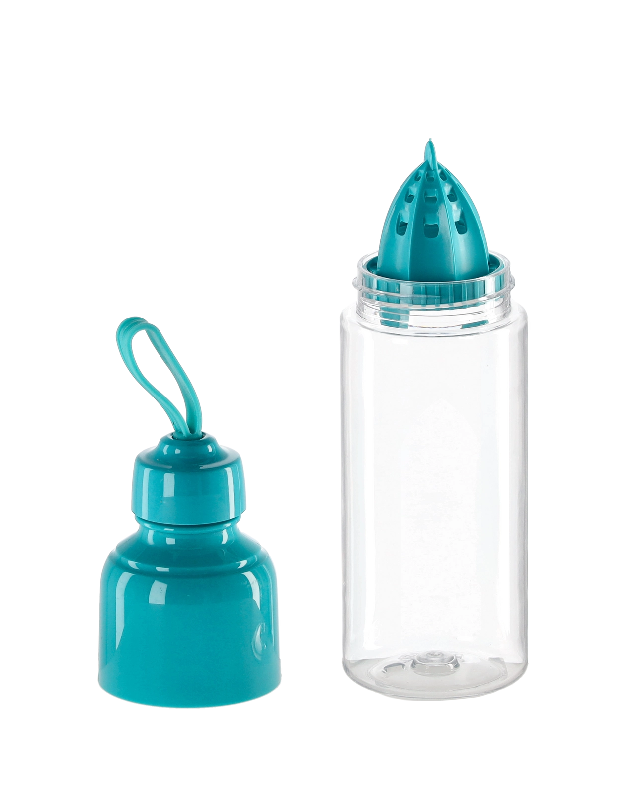 Frissítsd fel folyadékbeviteledet frissen facsart citruslével közvetlenül a palackban. A beépített citrusprés gyors facsarásra és a víz azonnali, vitamindús ízesítésére szolgál. Az átlátszó palacktest megkönnyíti a tartalom ellenőrzését, kompakt méreteinek köszönhetően pedig elfér táskában és hátizsákban is.