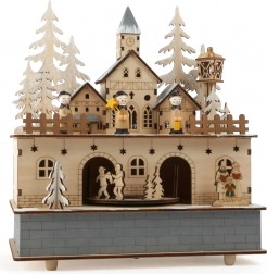 A Small Foot márkájú fa játékdoboz egy varázslatos téli faluba vezeti Önt, ahol táncoló figurák alatt várják, havas és megvilágított tájjal. Az ismert karácsonyi dallamok kellemes hangulatot és örömöt hoznak otthonába. Ez a doboz ideális kiegészítője a karácsonyi díszítésnek, és az esti varázslatot a LED világítással biztosítja.