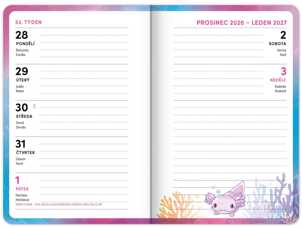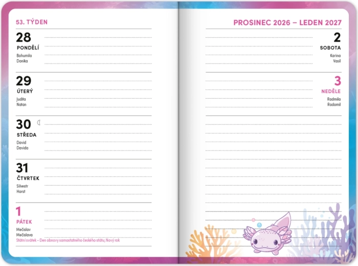Iskolai határidőnapló Axolotl 2026 szeptember – 2027 december, 9,8 × 14,5 cm