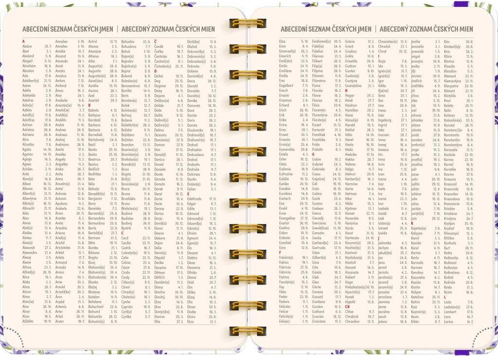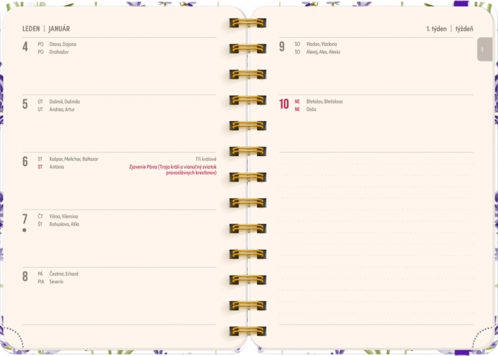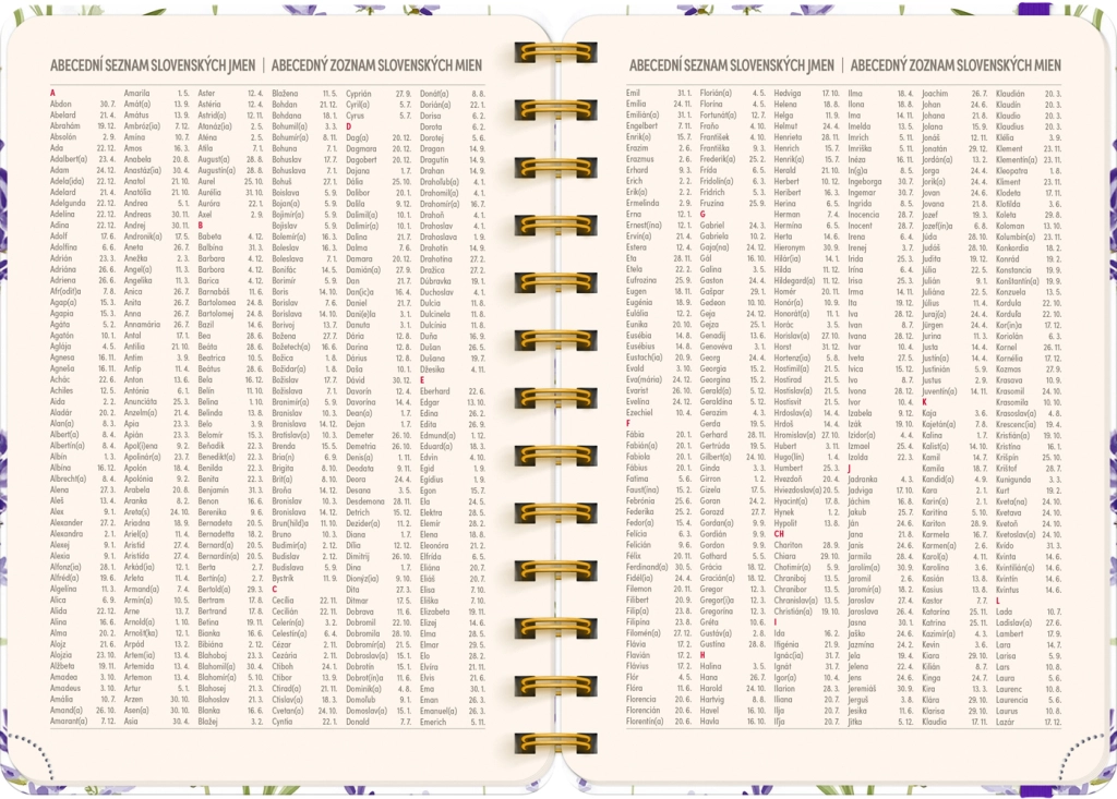 - Heti vonalas kalendárium cseh és szlovák névnapokkal és ünnepekkel