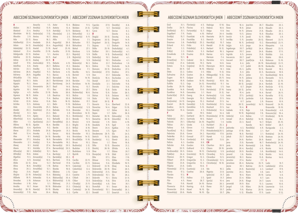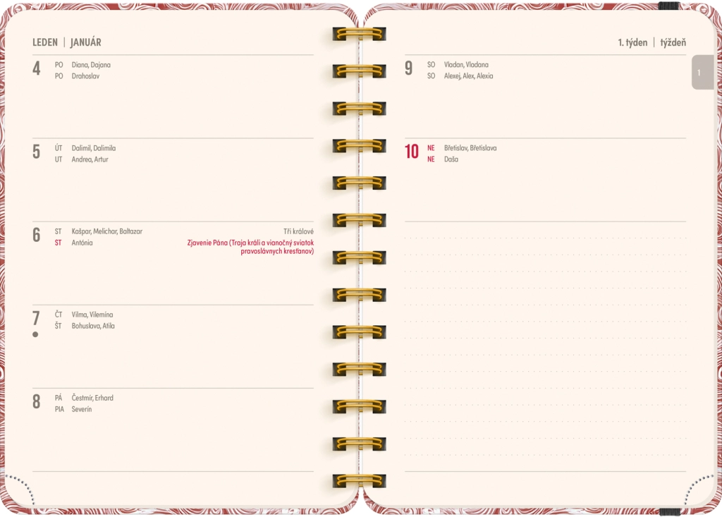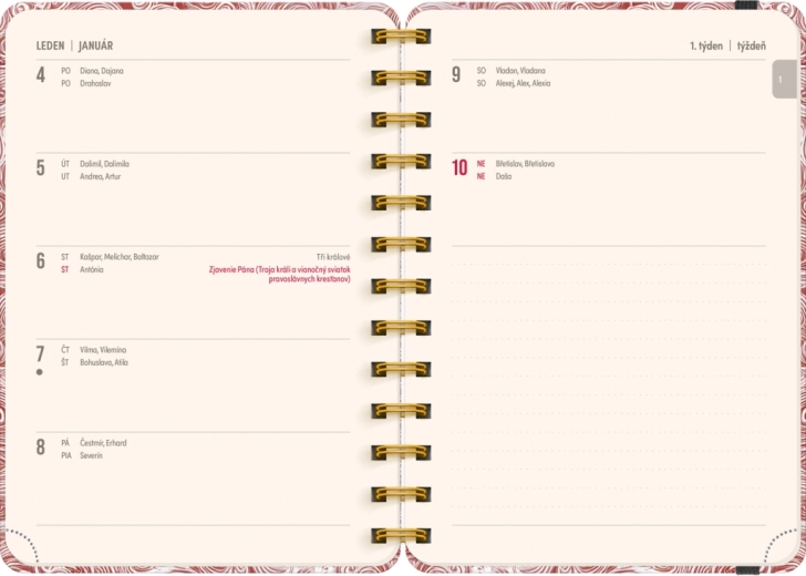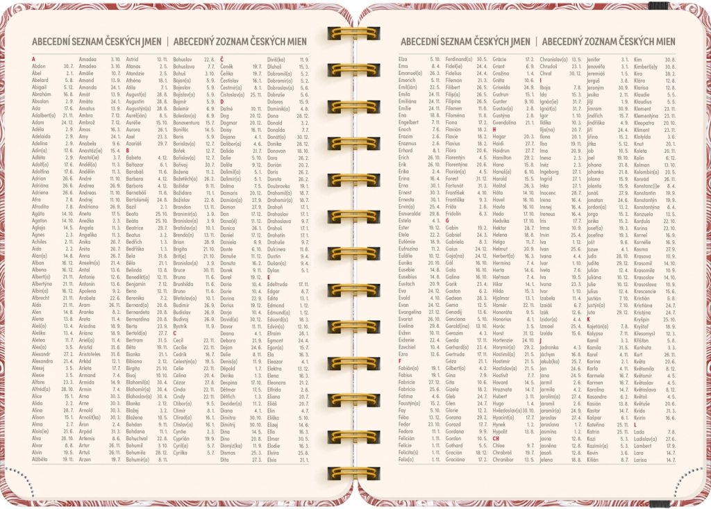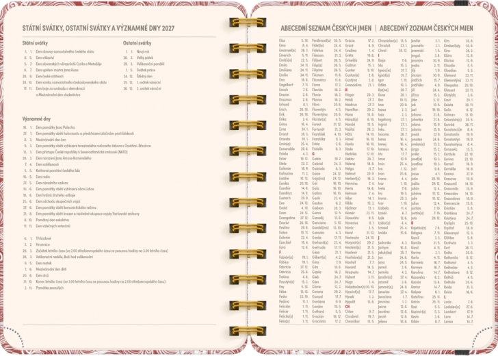 - Heti, vonalas, cseh–szlovák, nevekkel és ünnepnapokkal