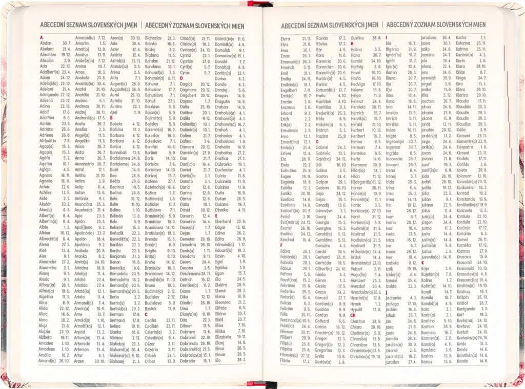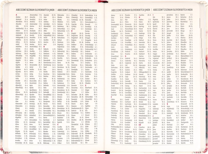 - Cseh–szlovák kalendárium – mindkét ország nevei és ünnepnapjai