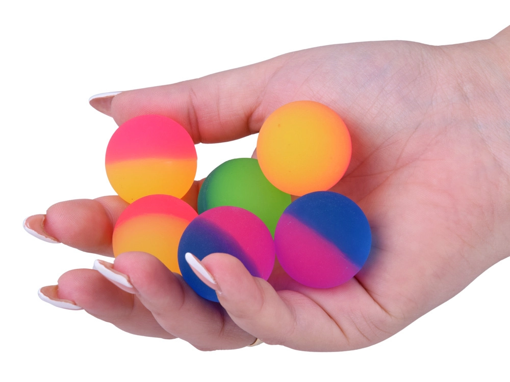 Ez a színes pattogólabda-készlet rengeteg mozgást és örömöt hoz. A kétszínű neon dizájn első pillantásra magával ragad, a magas rugalmasság pedig energikus pattogást garantál. A labdák kompaktak, könnyűek és kellemes fogásúak – készen állnak a spontán játékra bárhol.