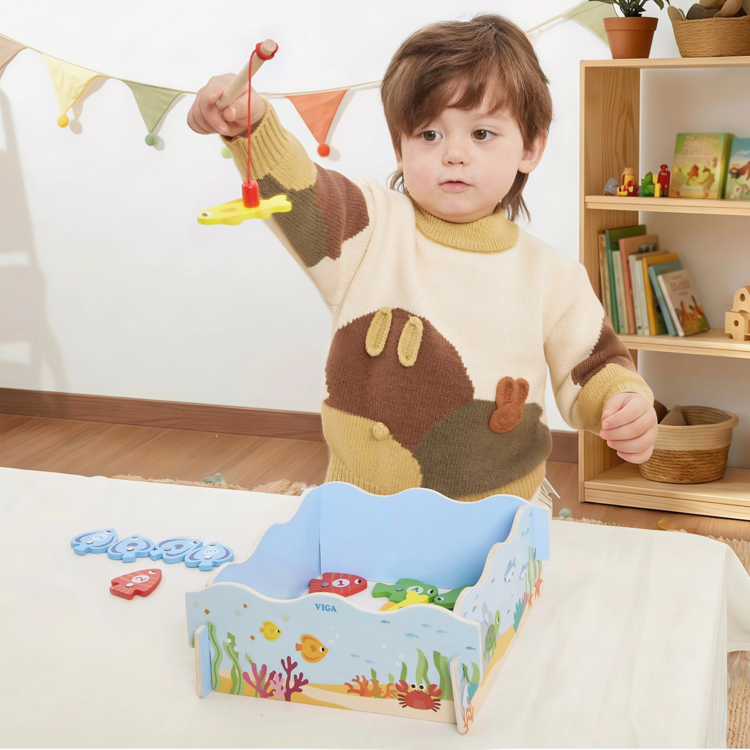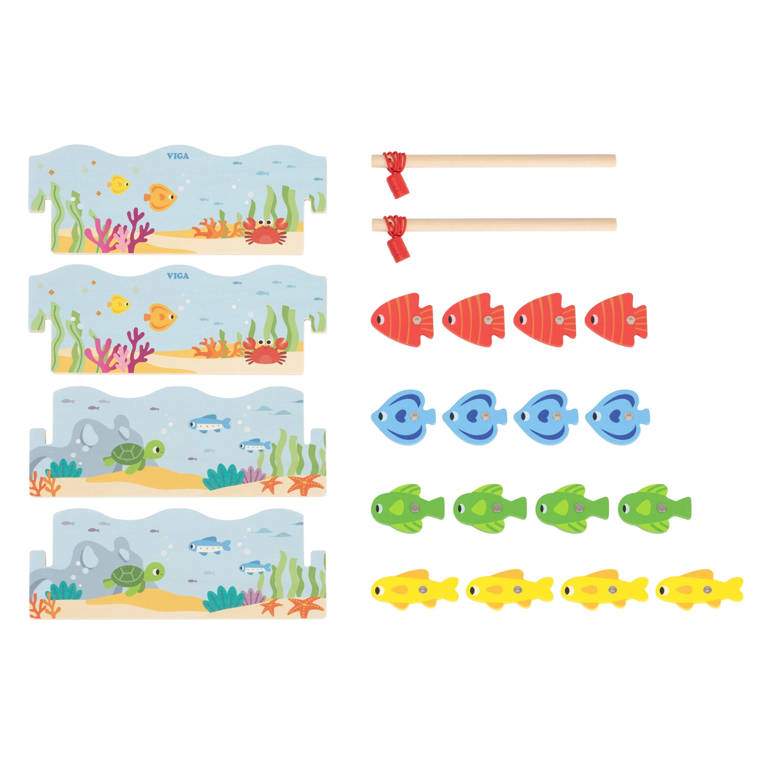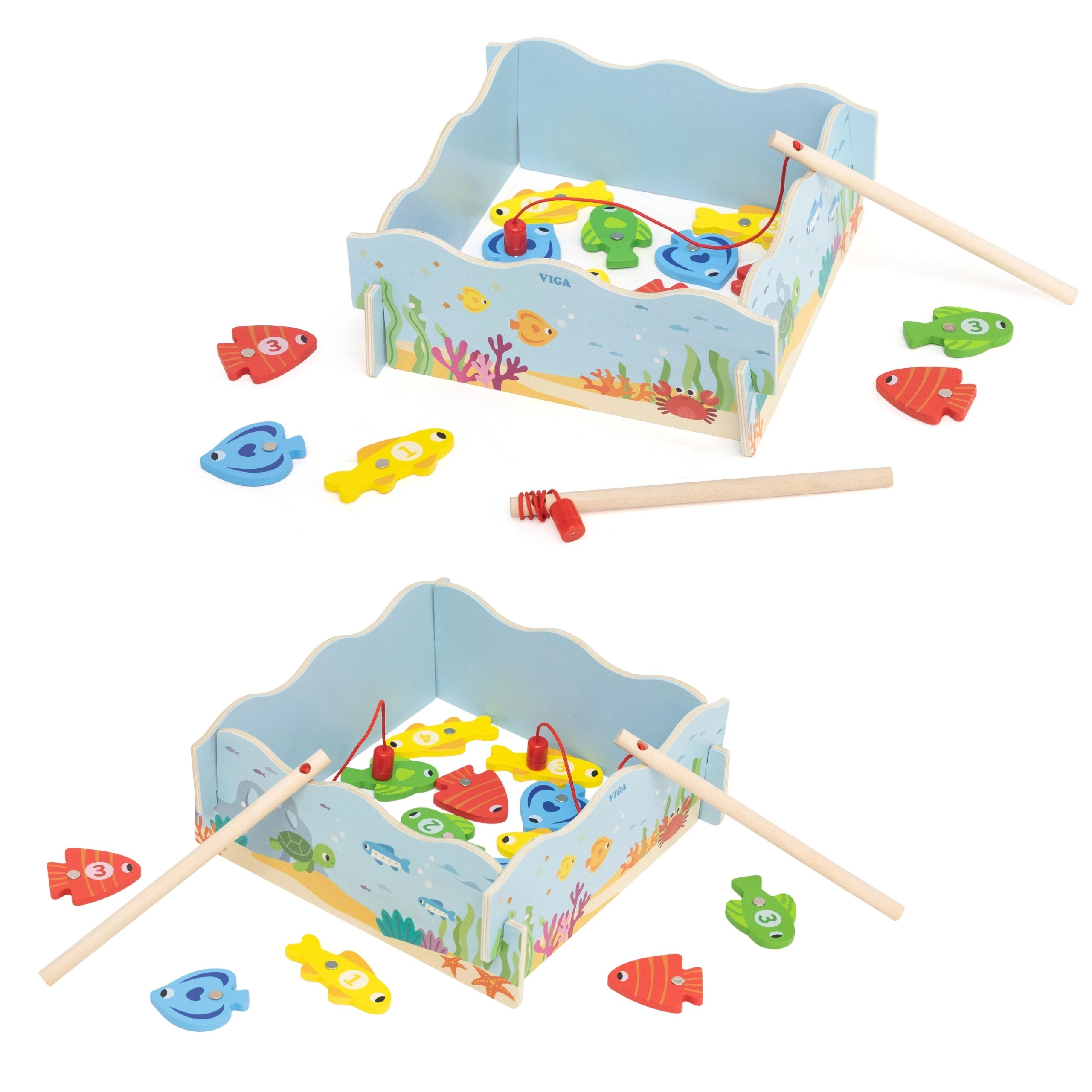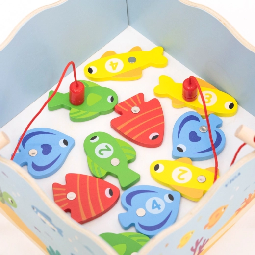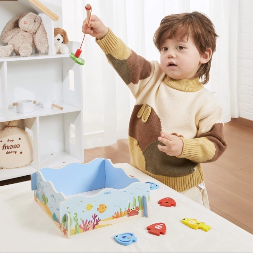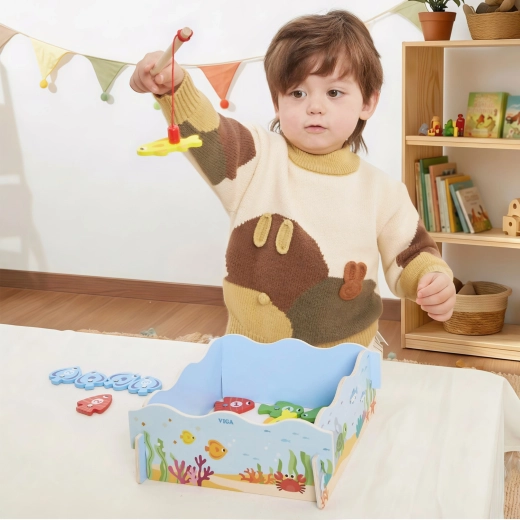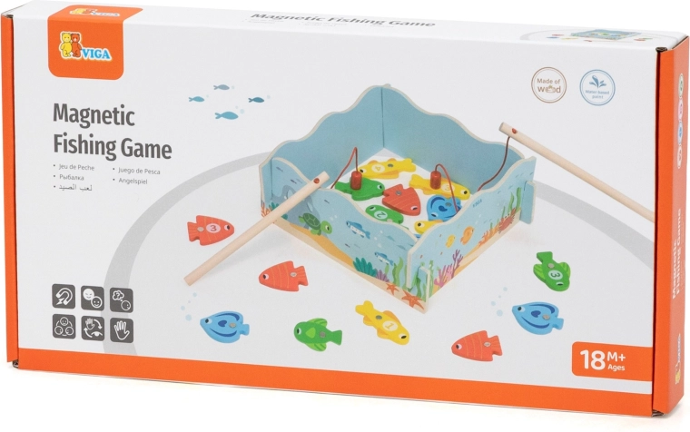 Adj okos szórakozást a gyerekeknek, amely ötvözi a játékot és a tanulást. A VIGA fa mágneses horgászjátéka színes, számozott halacskákat és két mágneses horgászbotot tartalmaz, amelyekkel a gyerekek gyakorolják a mozdulatok pontosságát és a koncentrációt. A doboz kék „tócsává” alakul, a játék után pedig mindent könnyű elpakolni.