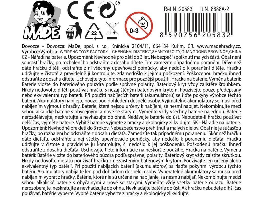 A fúrógép minőségi műanyagból készült, így könnyű, tartós és biztonságos a gyerekek számára. A display dobozos csomagolás ajándéknak is kiváló.