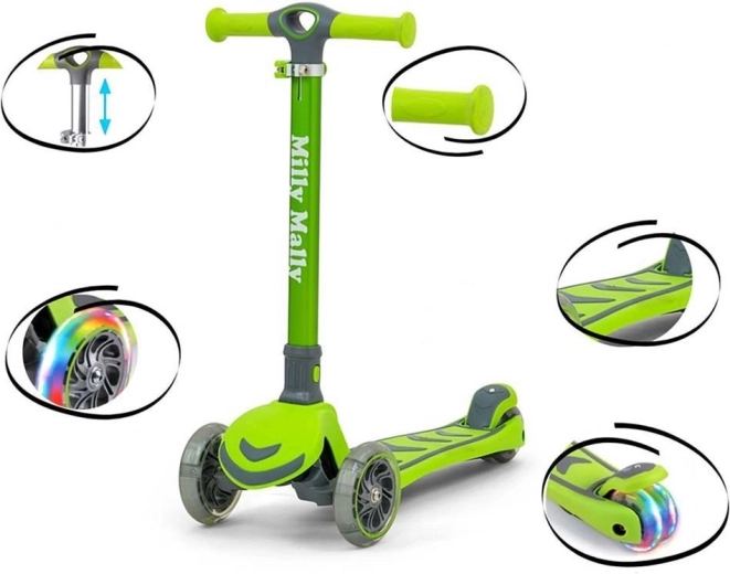 Szórakoztató és biztonságos rollert keres aktív gyerekeknek? A Milly Mally Boogie remek választás mindennapi guruláshoz és udvari mókához. A könnyű alumínium szerkezetnek és a megerősített minőségi műanyagnak köszönhetően a roller erős, tartós és könnyen kezelhető. A három kerék kiváló stabilitást ad, a kanyarodás természetes testdőléssel történik, a hátsó sárvédő pedig lábfékként szolgál.