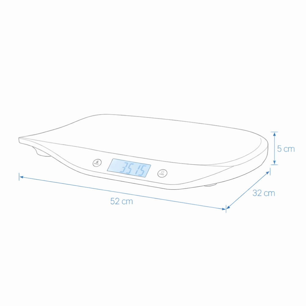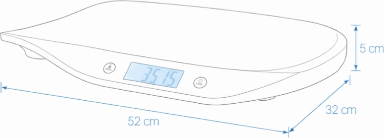 Az ergonomikus, széles és enyhén ívelt felület megakadályozza a baba lecsúszását, és kényelmesebbé teszi a mérést. Az egyszerű, intuitív kezelhetőség, az automatikus kikapcsolás és a két AAA elemmel történő tápellátás ideális választássá teszi ezt a mérleget a mindennapi otthoni használatra.