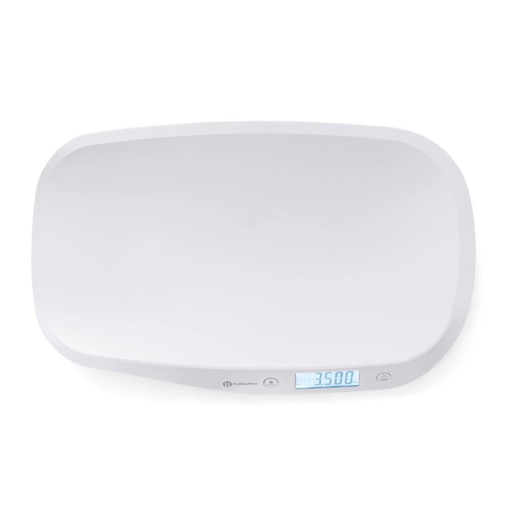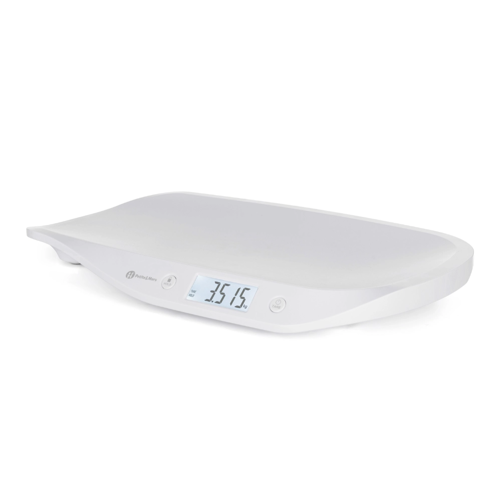Megbízhatóan kövesse kisbabája növekedését a PETITE&MARS Balance digitális babamérleggel. Megvilágított LCD kijelzőt kínál a könnyű leolvasáshoz, automatikus és manuális HOLD funkciót a stabil eredményért a baba mozgása közben is, valamint TARE funkciót a takaró súlyának levonásához. Az ergonomikusan ívelt mérőfelület biztonságot és kényelmet nyújt, a mérési tartomány 0,1–20 kg, finom 5 g-os lépésközzel és választható kg/lb/oz egységekkel.