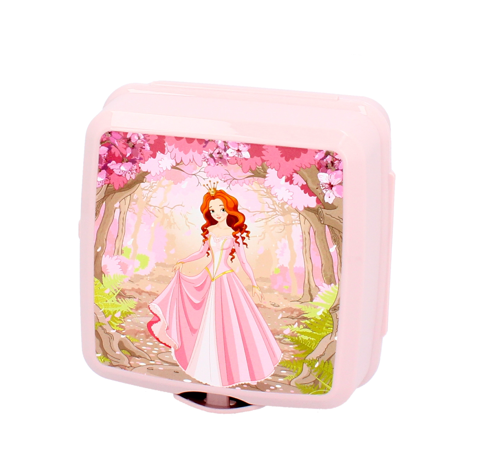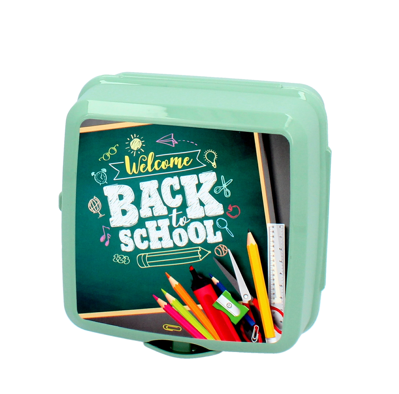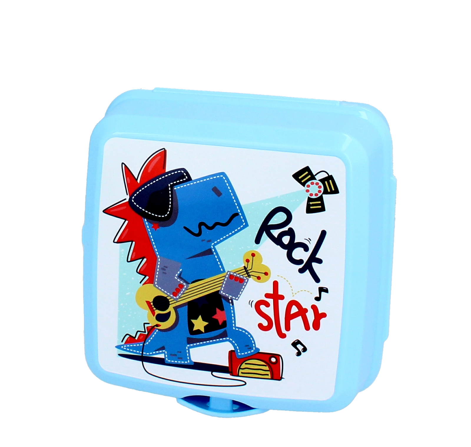 A doboz a masszív, pattintós zárnak köszönhetően biztonságosan védi a szendvicset és az uzsonnát. Kompakt formája könnyen elfér a hátizsákban.