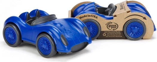 A Green Toys kék versenyautója ideális játék az első futamokhoz szőnyegen, padlón vagy a homokozóban. A minimalista, sima, éles szélek nélküli design és a tartós szerkezet támogatja a biztonságos játékot, valamint a finommotorika és a képzelet fejlődését.