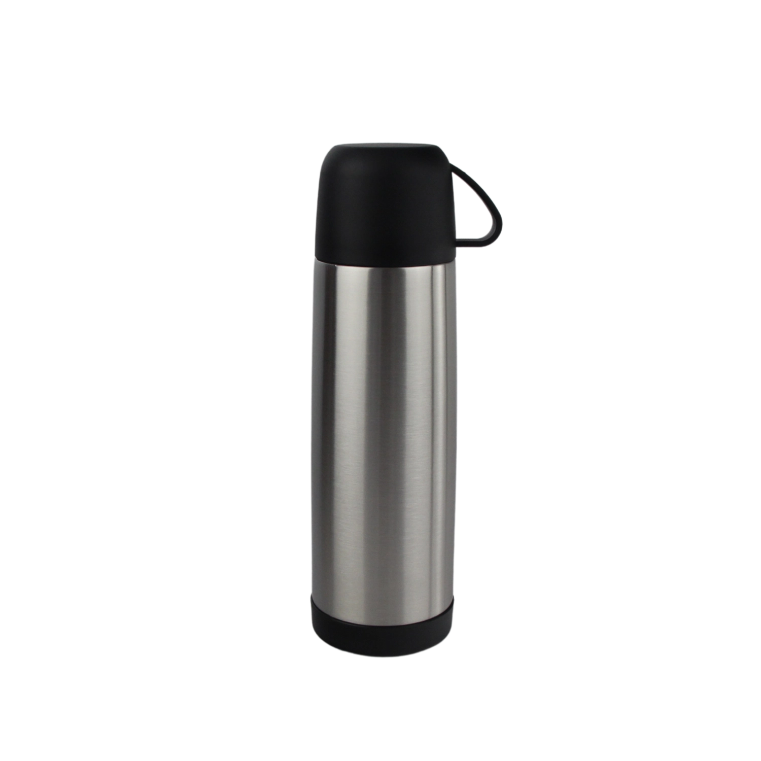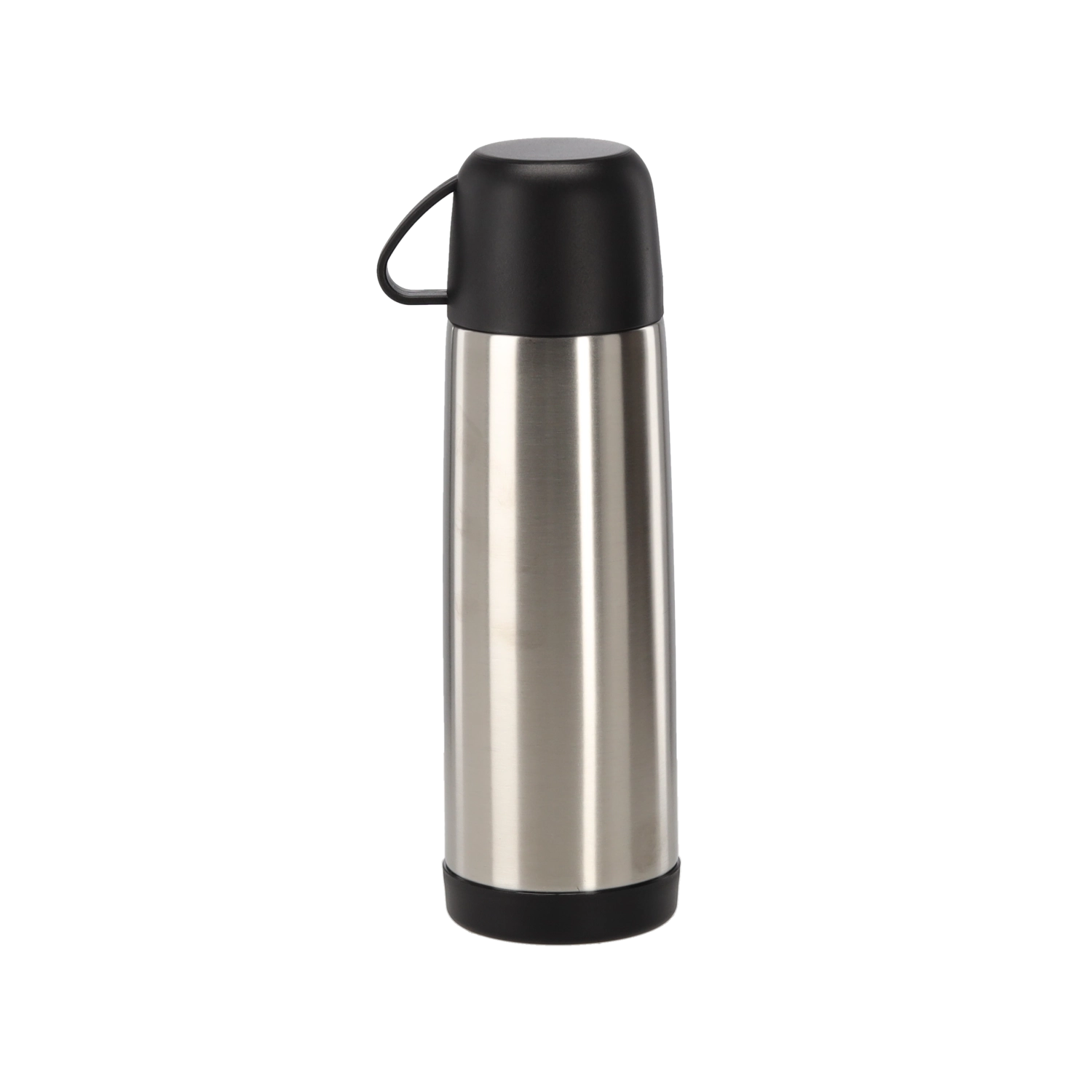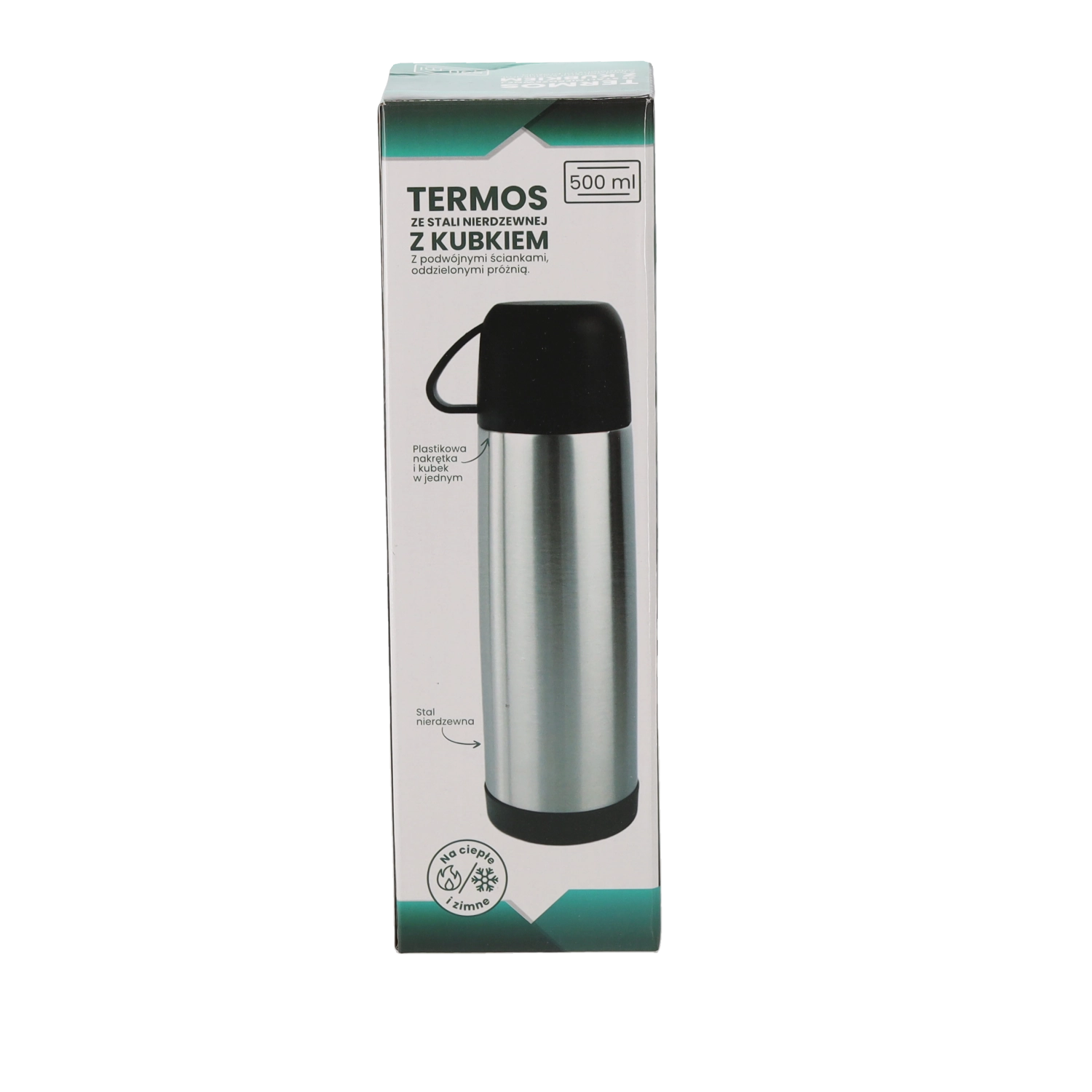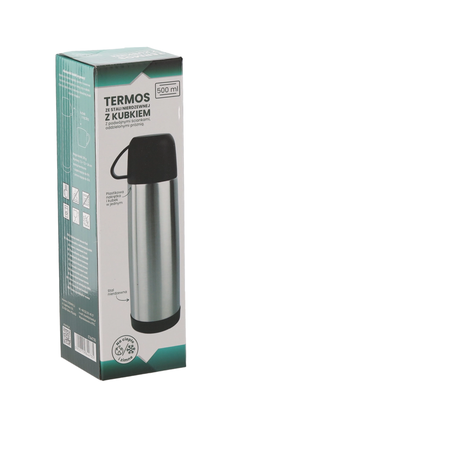 Praktikus 500 ml űrtartalmú termosz bögrével a mindennapi használathoz. A duplafalú rozsdamentes acélnak köszönhetően az italok sokáig melegek maradnak – 96 °C-ról 38–40 °C-ra 24 óra alatt. Tartozik hozzá egy strapabíró műanyag bögre a kényelmes útközbeni iváshoz.