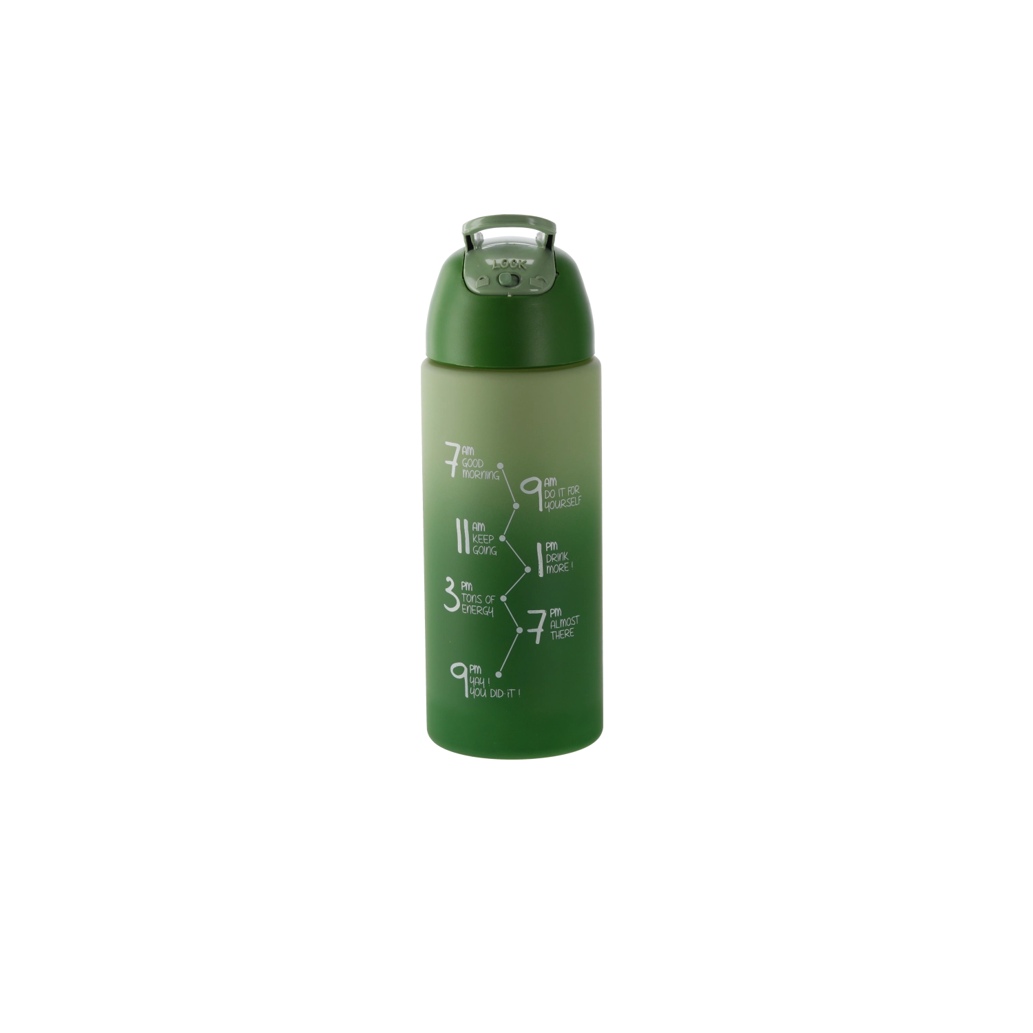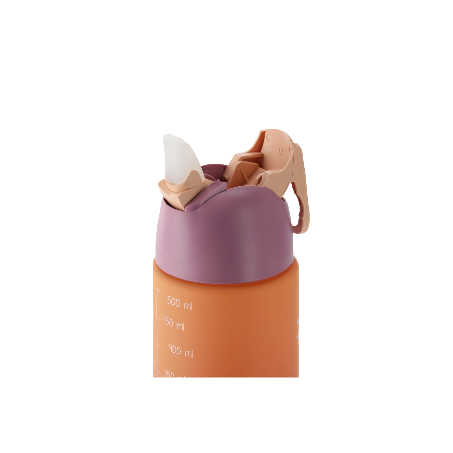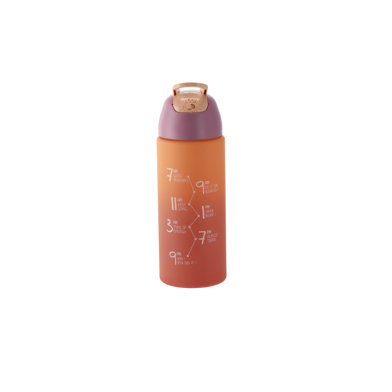 A félig átlátszó palacktest nyomtatott milliliteres jelölésekkel megkönnyíti a napi ivási rutin nyomon követését. Kompakt formája jól illeszkedik a pohártartókba és a hátizsákok oldalzsebébe – kiváló sporthoz, iskolába és irodába.