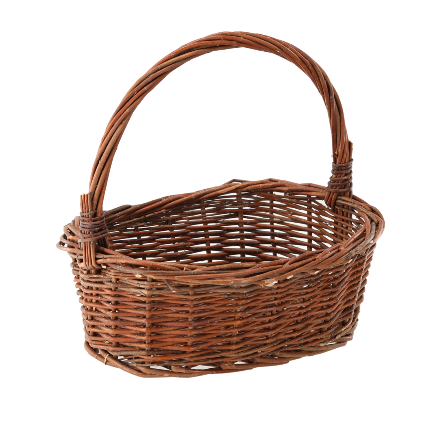 Sokoldalú fonott kosár természetes barna színben, amely egyszerre stílusos és praktikus kiegészítő az otthonba. Erős fonata és kényelmes fogantyúja miatt alkalmas apróságok, bevásárlás szállítására, valamint dekoratív elemként a lakásban vagy a nyaralóban. A kézi megmunkálás gondoskodik minden részletről, és egyedi megjelenést kölcsönöz a kosárnak.