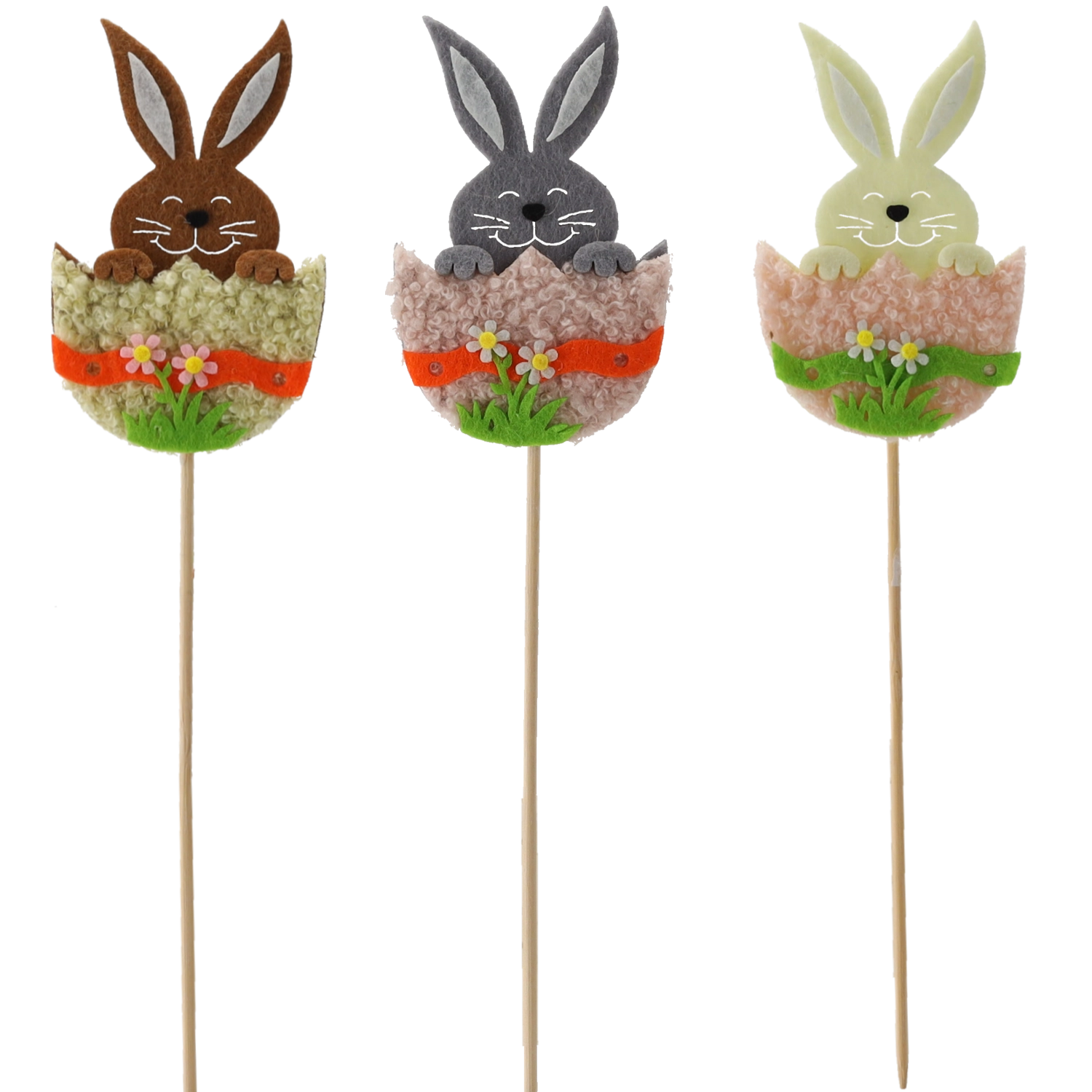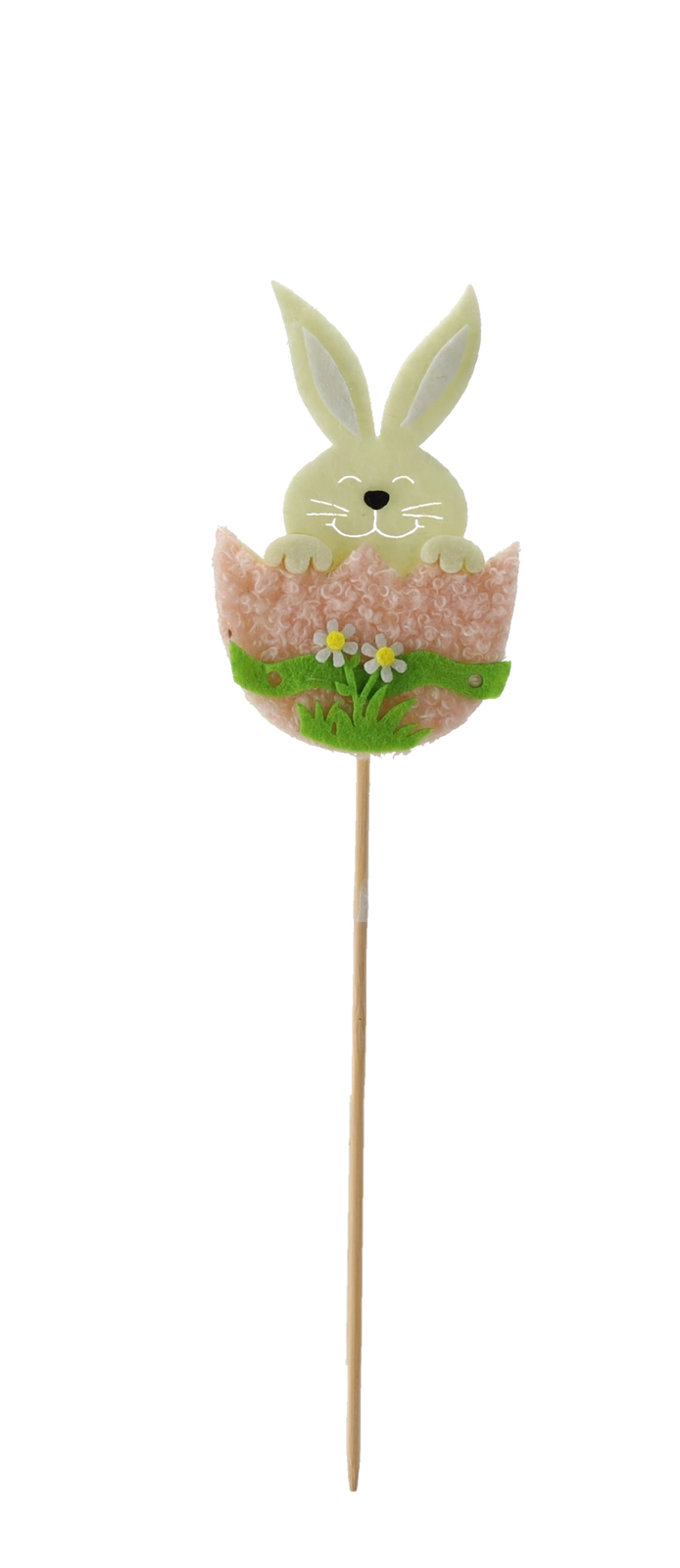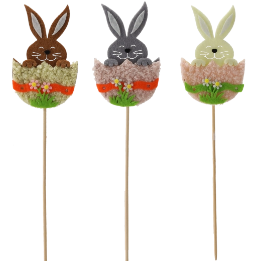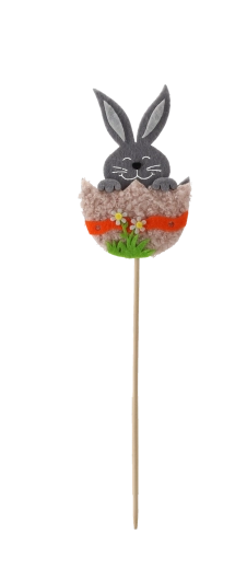 Teremtsen ünnepi hangulatot otthonában a cuki tojáshéjban lévő nyuszival fa pálcikán. A dísz könnyű, stabil, és kiválóan tart a virágföldben vagy a florisztikai tűzőhabban. A háromszínű mix lehetővé teszi a kreatív kombinációkat tavaszi és húsvéti elrendezésekben.