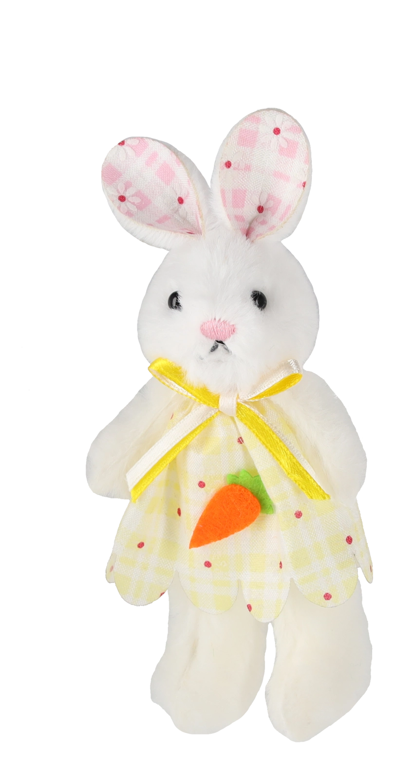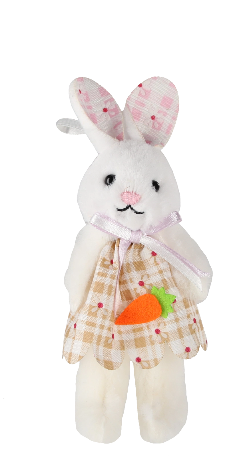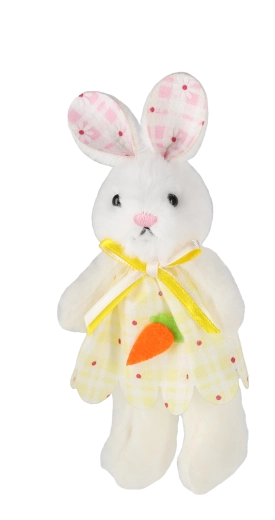 A nyuszik puha plüssből készültek, hímzett arccal és kis répával – egy dekoráció, amely első pillantásra megragadja a figyelmet és otthonosabbá teszi a belső tereket.