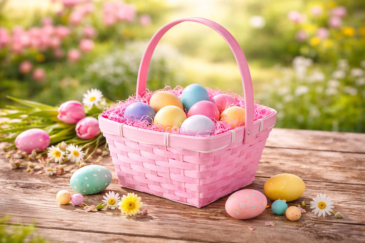 A kosár csomagja két szín keverékét tartalmazza, amelyek tökéletesen illenek a húsvéti és tavaszi dekorációhoz.