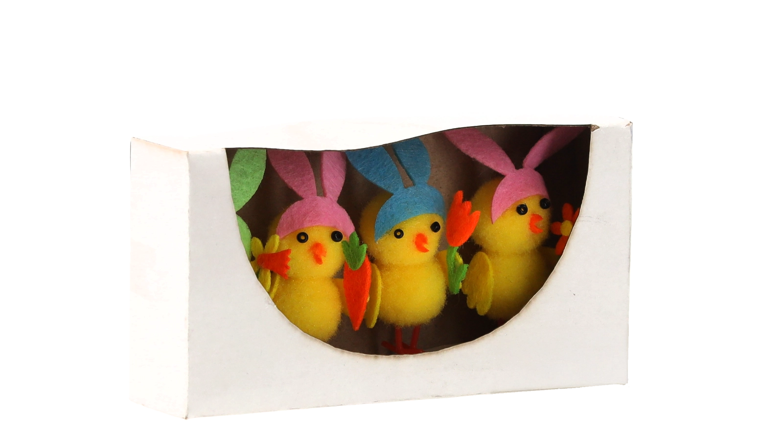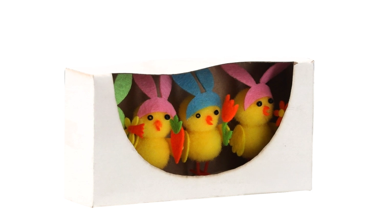 Vidám, négydarabos húsvéti díszszett, amely tavaszi hangulattal tölti meg otthonát. A nyuszifülű, aranyos csibék különböző mintákkal játékos megjelenést kölcsönöznek a dekorációnak, könnyűek és tartósak, és remekül mutatnak kosarakban, koszorúkon és az ünnepi asztalon is.