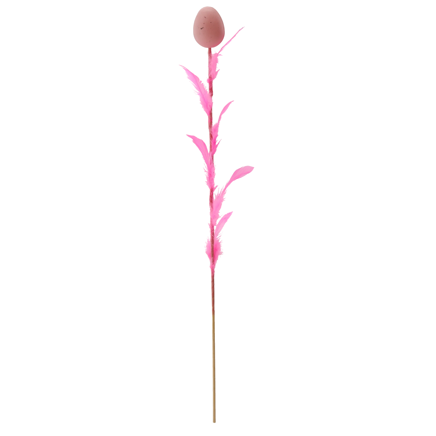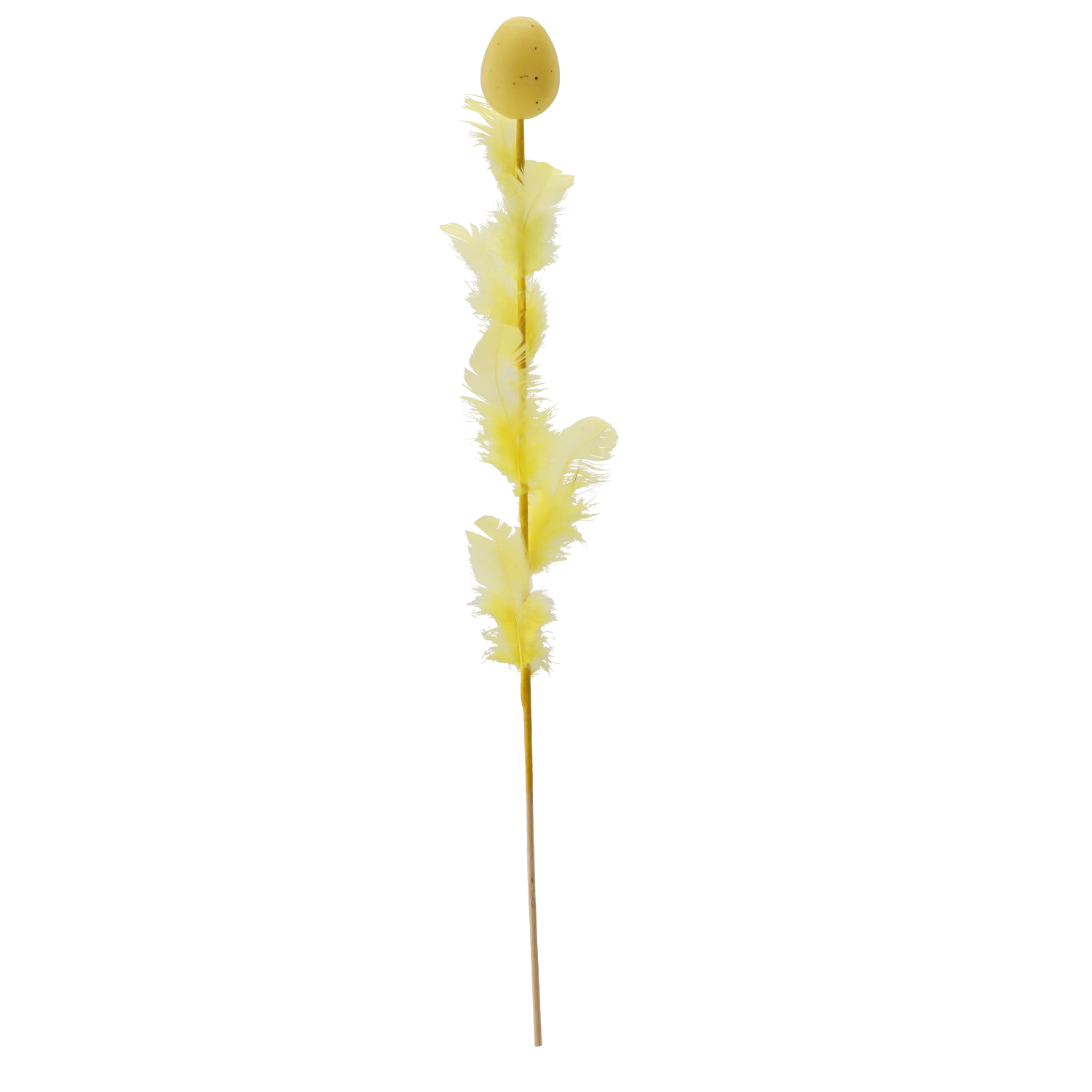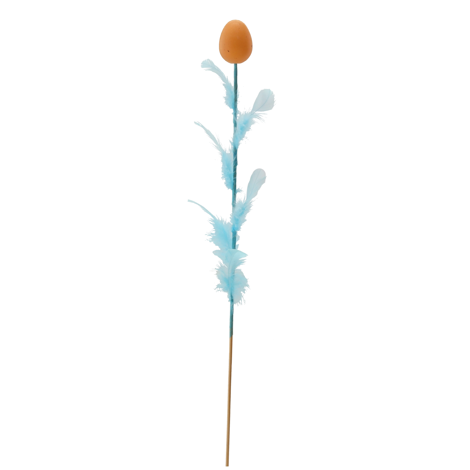Elegáns húsvéti dekoráció tojás formában, tollakkal díszítve, 45 cm hosszú pálcán, amely feldobja ünnepi aranázsát. Négy friss szín keverékében kapható, amely színt és tavaszi hangulatot visz az enteriőrbe. A finom tollak légies könnyedséget kölcsönöznek, így ideális választás csokrokba, kosarakba és vázákba.