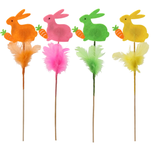 Teremts harmonikus tavaszi és húsvéti hangulatot a dekoratív nyuszival pálcikán. A pasztell árnyalatok és a könnyed tollacskák friss és elegáns hatást keltenek, akár kaspóba, koszorúba vagy ünnepi kosárba helyezed. A praktikus pálcikának köszönhetően az elhelyezés egyszerű és gyors.