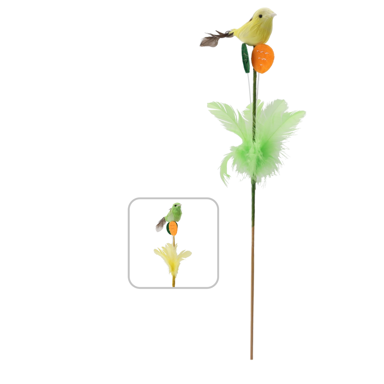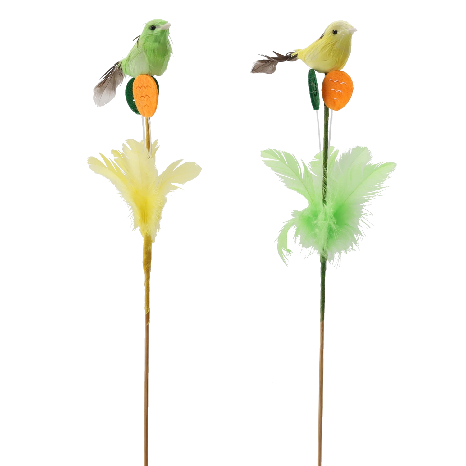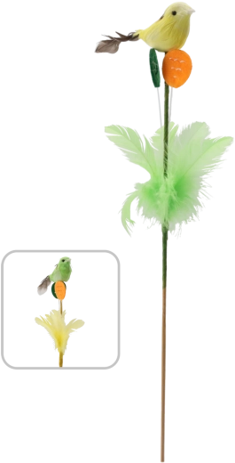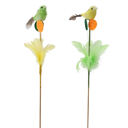 Elegáns húsvéti dísz pálcán, tollacskákkal díszített madár formában, 30 cm hosszban, amely friss tavaszi hangulatot kölcsönöz otthonának. A finom tollaknak és a valósághű kidolgozásnak köszönhetően természetes hatást kelt, és remekül mutat virágkompozíciókban, húsvéti koszorúkban vagy önálló dekorációként is. Két színváltozatban érhető el, 12 darabos csomagban – ideális nagyobb projektekhez vagy megosztáshoz a szerettekkel.
