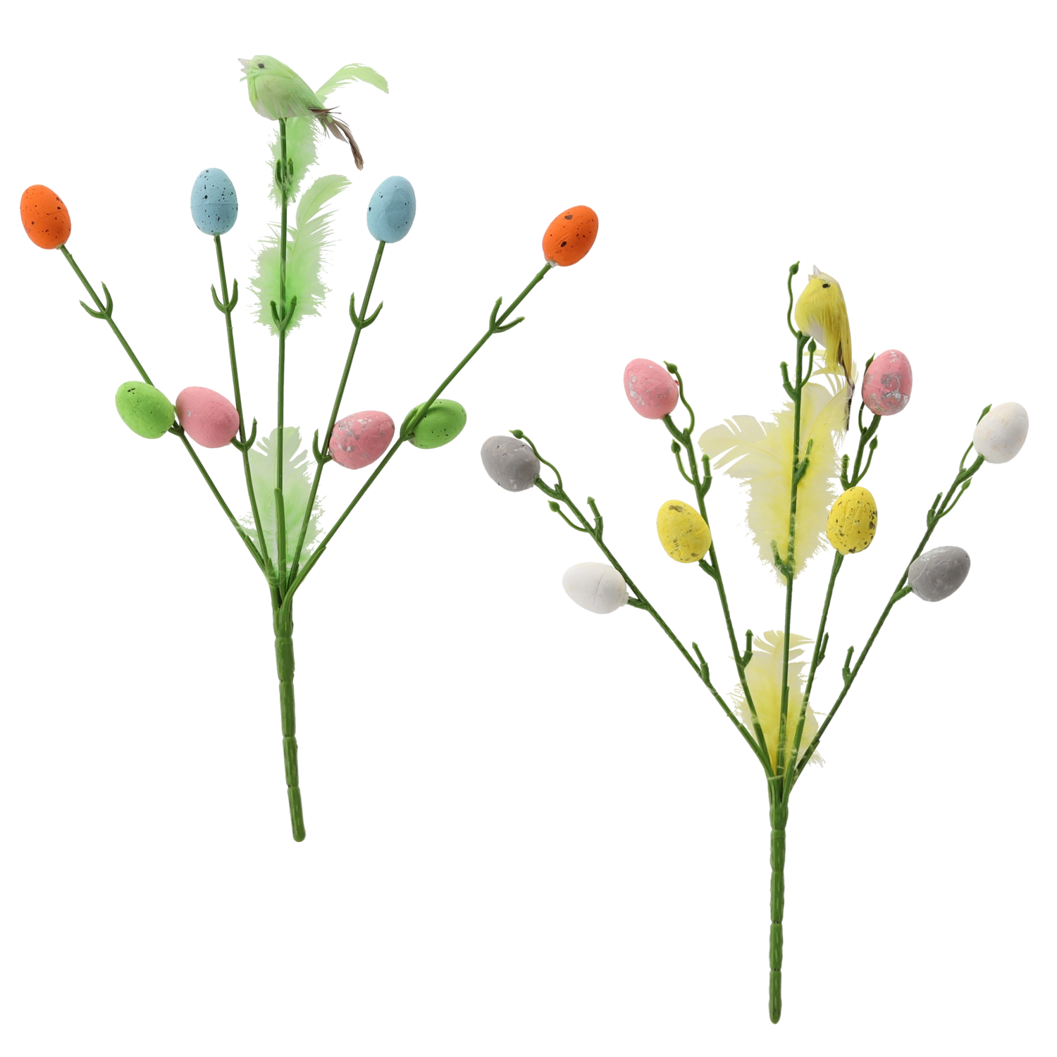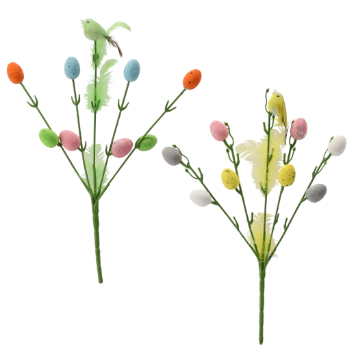 Az ágacska könnyű, karbantartást nem igényel, és a stabil pálcának köszönhetően könnyen rögzíthető az elrendezésekben. A pasztell árnyalatok frissességet visznek a térbe, és kiemelik a húsvéti ünnepi hangulatot.