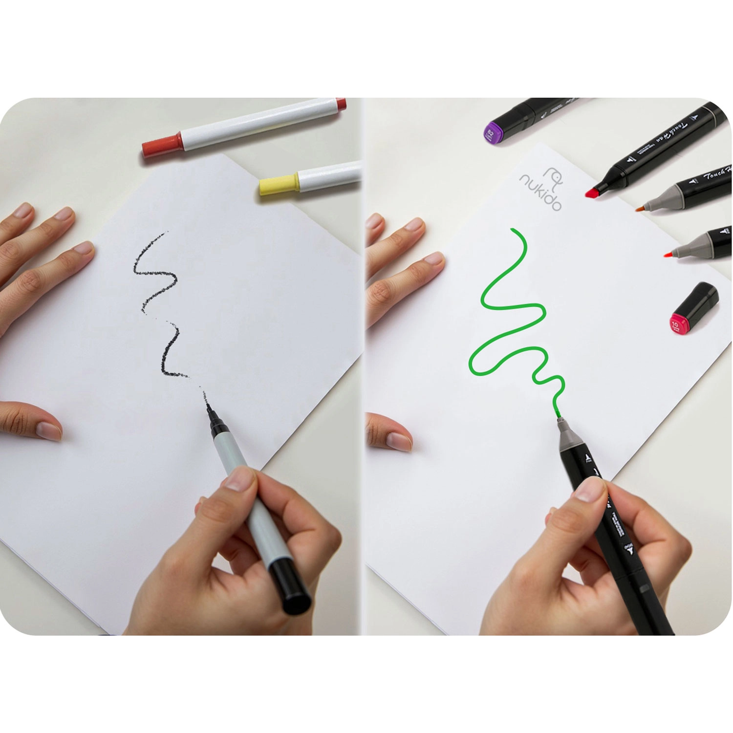 Az alkoholos tinta pillanatok alatt szárad, nem maszatol, és száradás után vízálló. Ideális kalligráfiához, illusztrációhoz és mindennapi rajzoláshoz.