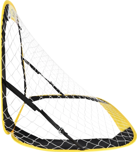 A szerkezet rugalmas, mégis tartós üvegszálas rudakból áll, amelyek jól tartják a formát és bírják a terhelést. A sűrű szövésű poliészter háló szakadás- és időjárásálló. A terepen való stabilitásról három fém leszúrótüske gondoskodik, így a kapu erős szélben vagy intenzív játék közben is biztosan áll.
