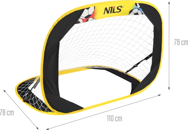 Könnyű és tartós, önfelálló NILS BR2415 kapu szórakozáshoz és edzéshez bárhol. A pop-up szerkezetnek köszönhetően néhány másodperc alatt felállítható, a hordtáskában könnyen szállítható, és leszúrótüskékkel rögzíthető a talajhoz. A gyors összeszerelés, az alacsony tömeg, a masszív üvegszálas rudak és az ellenálló poliészter háló ideális választássá teszik kertbe, parkba és kirándulásokra is.