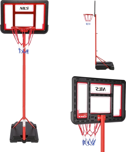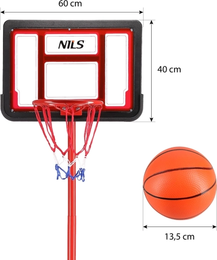 A NILS ZDK881A gyerek kosárlabdaállvány mobil és magasságában állítható szett, ideális a kosárlabda első lépéseihez. Kétféle magasságállítást kínál a szerkezetnél és a gyűrűnél, időtálló anyagokból készül bármilyen időjáráshoz, a csomagban pedig egy puha gumilabda is található a biztonságos játékhoz.