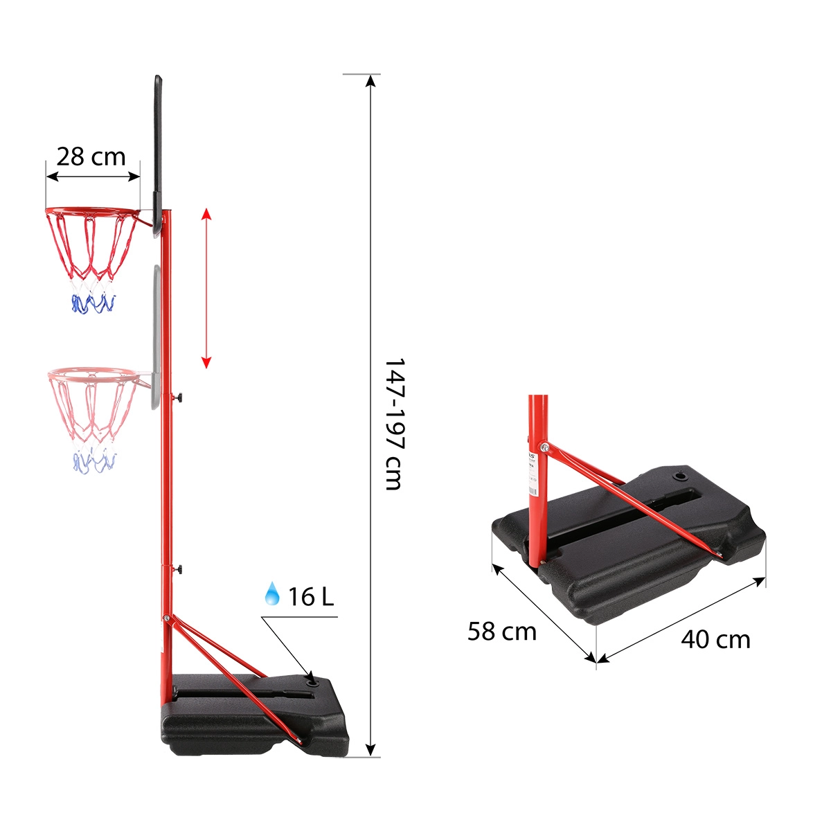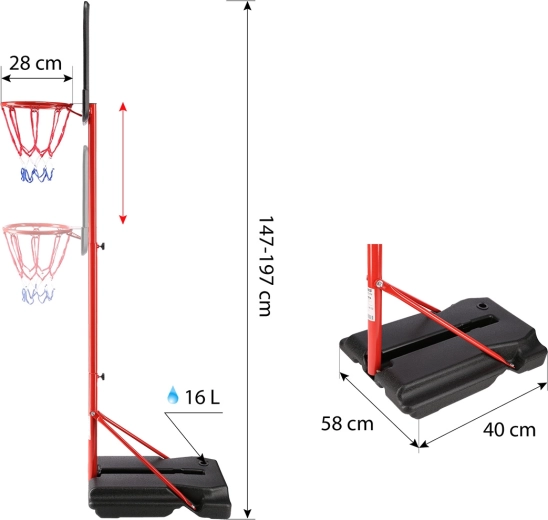 - Magasságában állítható – szerkezet 1,47 vagy 1,97 m; gyűrű magassága 1,07 vagy 1,57 m