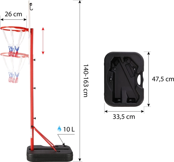 Ösztönözze a mozgás örömét a NILS gyerek kosárpalánkkal – mobil, szabadon álló szett játékos dobásokhoz és első edzésekhez. Az állítható 1,4–1,63 m magasság együtt nő a gyerekkel, míg a puha és tartós PP gyűrű és a gumilabda minimalizálja a sérülések esélyét. Minden alkatrész időjárásálló, így rendszeres kültéri használatra is alkalmas.
