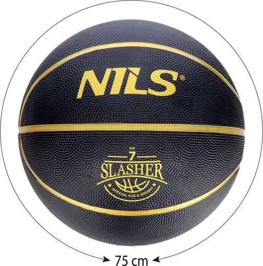 A NILS Slasher kosárlabda hivatalos 7-es méretben dinamikus játékra készült beltéren és kültéren egyaránt. A textúrált gumifelületnek köszönhetően megbízható fogást, kontrollált labdavezetést és stabil röppályát kínál dobáskor. Az időtálló fekete–arany dizájn minden pályán kiemeli a stílusod.