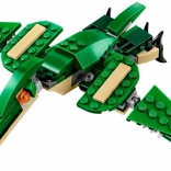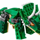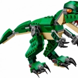 Ez a sokoldalú készlet lélegzetelállító, őskori kalandokat hoz el. Építsd meg a félelmetes T-Rexet mozgatható mancsokkal, fejjel és farokkal, nyisd ki a fogakkal teli állkapcsát, és keltsd életre a történeteket a megépíthető „kövületeknek” köszönhetően, amelyek az utolsó zsákmány maradványait idézik. A sötétzöld és bézs színek valósághű kombinációja kiemeli a modell hatásos megjelenését.