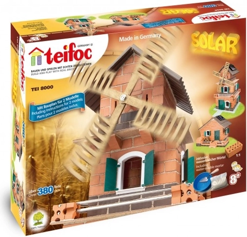 A készlet egyedi tulajdonsága a napelemes meghajtás, amely támogatja az oktatást a megújuló energiaforrásokról. A készlet Németországban készült, és valódi téglákkal, kukoricás malterrel nyújt minőségi anyagokat és hitelességet. A befejezés után a struktúra szétszerelhető és a téglák újra felhasználhatók.