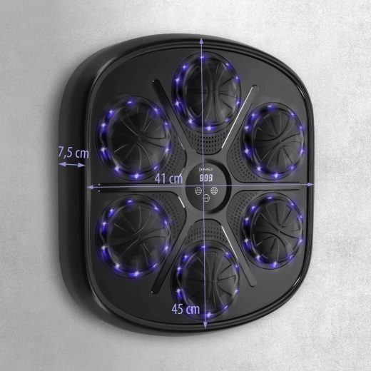 A HMS TB03 az otthoni bokszedzést magasabb szintre emeli. A dinamikus LED háttérvilágítás egyértelműen kijelöli az ütési zónákat, és gyors, pontos reakciókra ösztönöz, ezáltal javítja a kéz–szem koordinációt, a reflexeket és a kardió állóképességet. Az integrált kijelző a pontos találatok számolásával egyszerű, átlátható fejlődéskövetést biztosít felesleges beállítások nélkül.