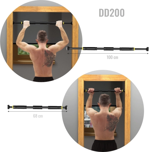 Az állítható 66,5–100 cm tartománynak köszönhetően a legtöbb ajtókerethez passzol. A szilikon végek megakadályozzák a csúszást és védik a félfát, míg a többrétegű festés (alapozó, korróziógátló réteg és porszórt bevonat) hosszú élettartamot biztosít. Ideális húzódzkodáshoz, evező jellegű húzásokhoz, kitartásokhoz és lábemelésekhez, a felsőtest és a központi izmok átfogó erősítéséhez.