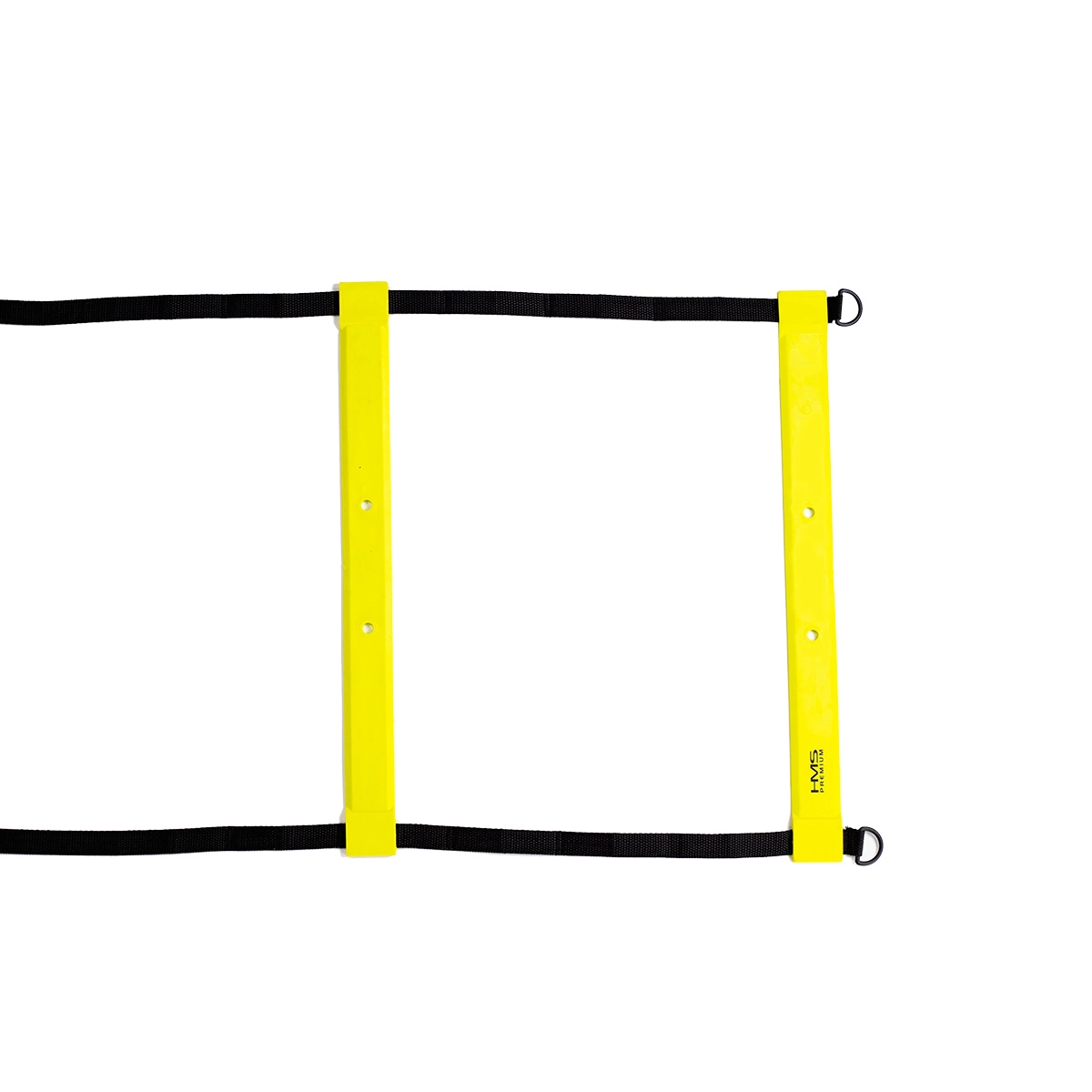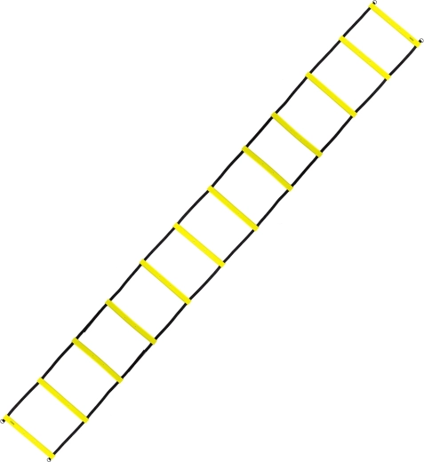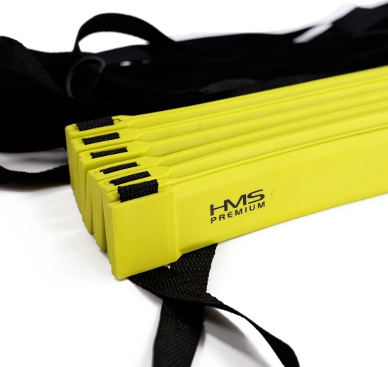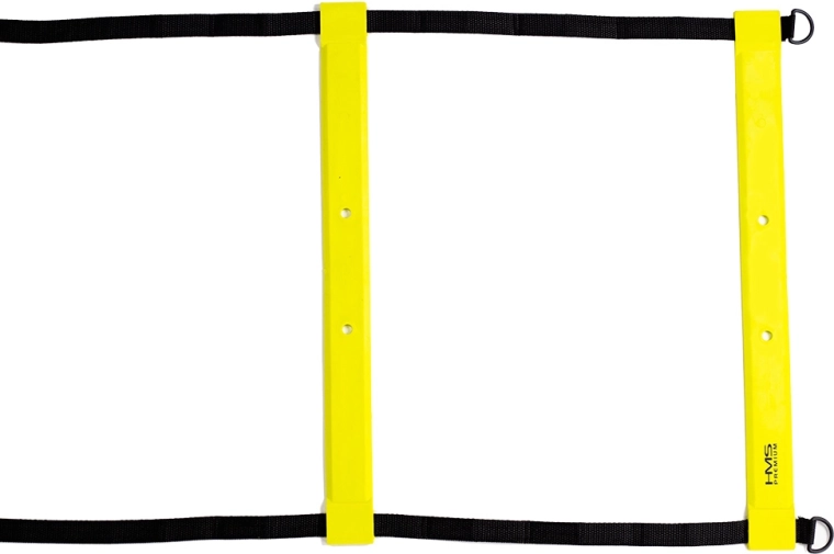 A HMS Premium 6 m edzéslétra sokoldalú eszköz atlétáknak, csapatoknak és hobbisportolóknak. A lapos TPE fokok és a tartós nejlon hevederek stabil talajfogást és folyamatos mozgást biztosítanak a gyors lábmunkát, irányváltásokat és bokaerősítést célzó drillek során. Élénk sárga színe beltérben és kültéren is kiválóan látható.