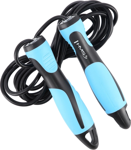 Könnyű és tartós HMS ugrálókötél ergonomikus, lágyított műanyagból készült markolatokkal és 275 cm-es gumis kábellel a sima, gyors pördülésért. A beépített csapágyak csavarodásmentes, egyenletes futást biztosítanak, ideális kardió edzéshez, a állóképesség és a koordináció fejlesztéséhez.
