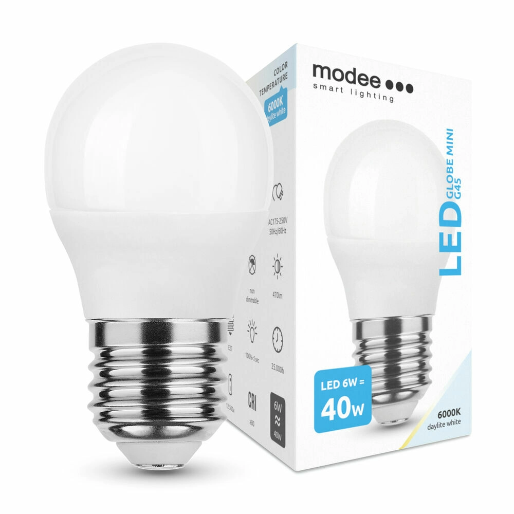 A LED izzó Globe Mini G45 ötvözi a takarékos működést az erős és egyenletes fénnyel. A kompakt méreteknek köszönhetően elfér kisebb búrákban és dekoratív lámpatestekben, miközben fényes, hideg fehér fényt biztosít, amely alkalmas munkához, konyhába, folyosókra és műszaki helyiségekbe.