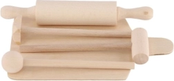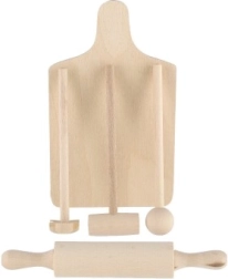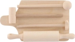 A vágódeszka, a sodrófa és a klopfoló élethű kivitele utánzásra ösztönzi a gyerekeket, és fejleszti az egészséges képzelőerőt.