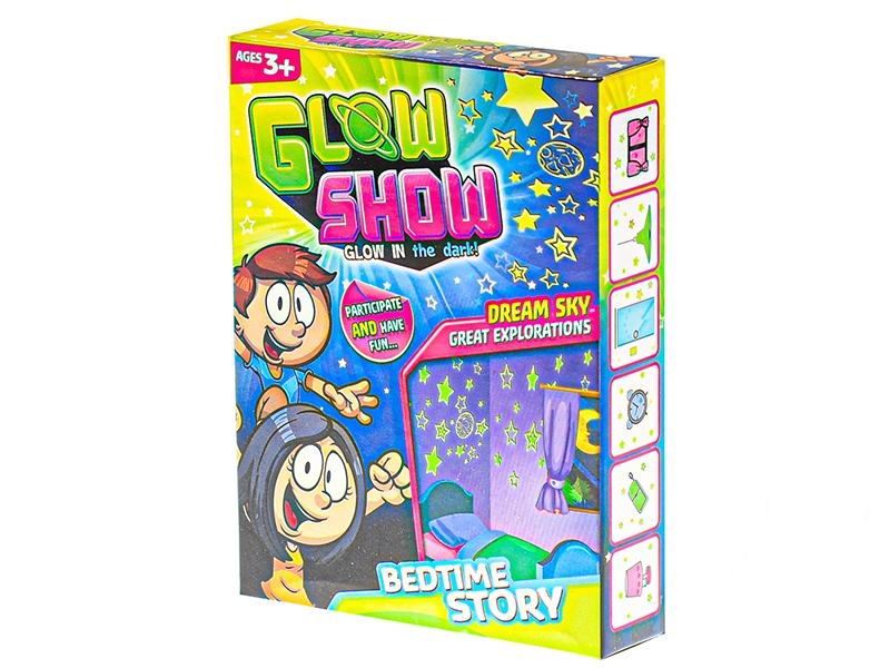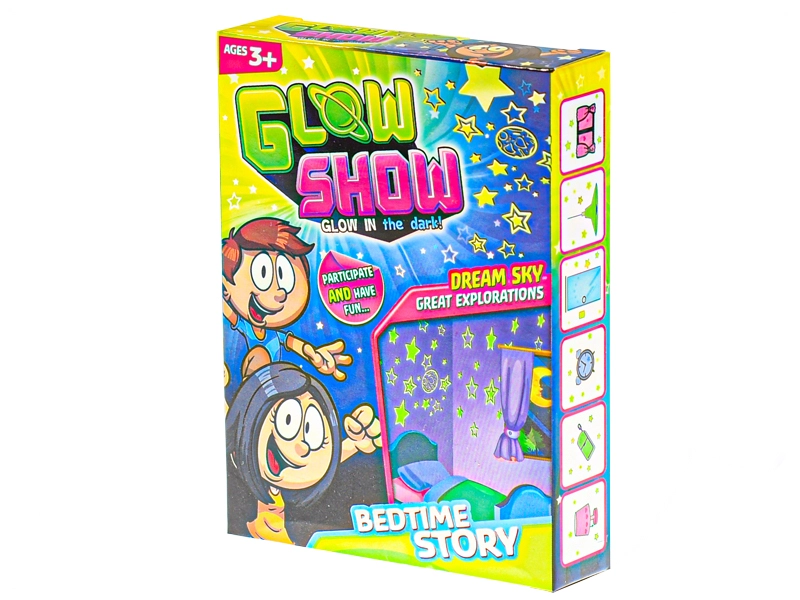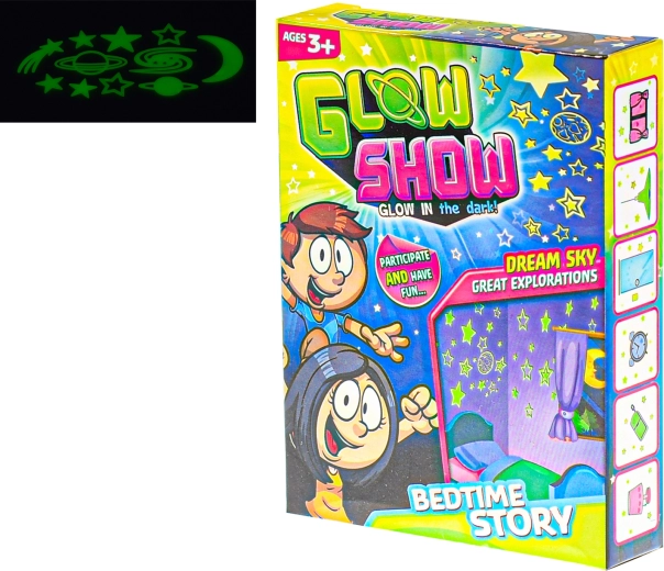 - Sötétben világító effekt – elég megvilágítani, és a csillagok finoman fénylenek.