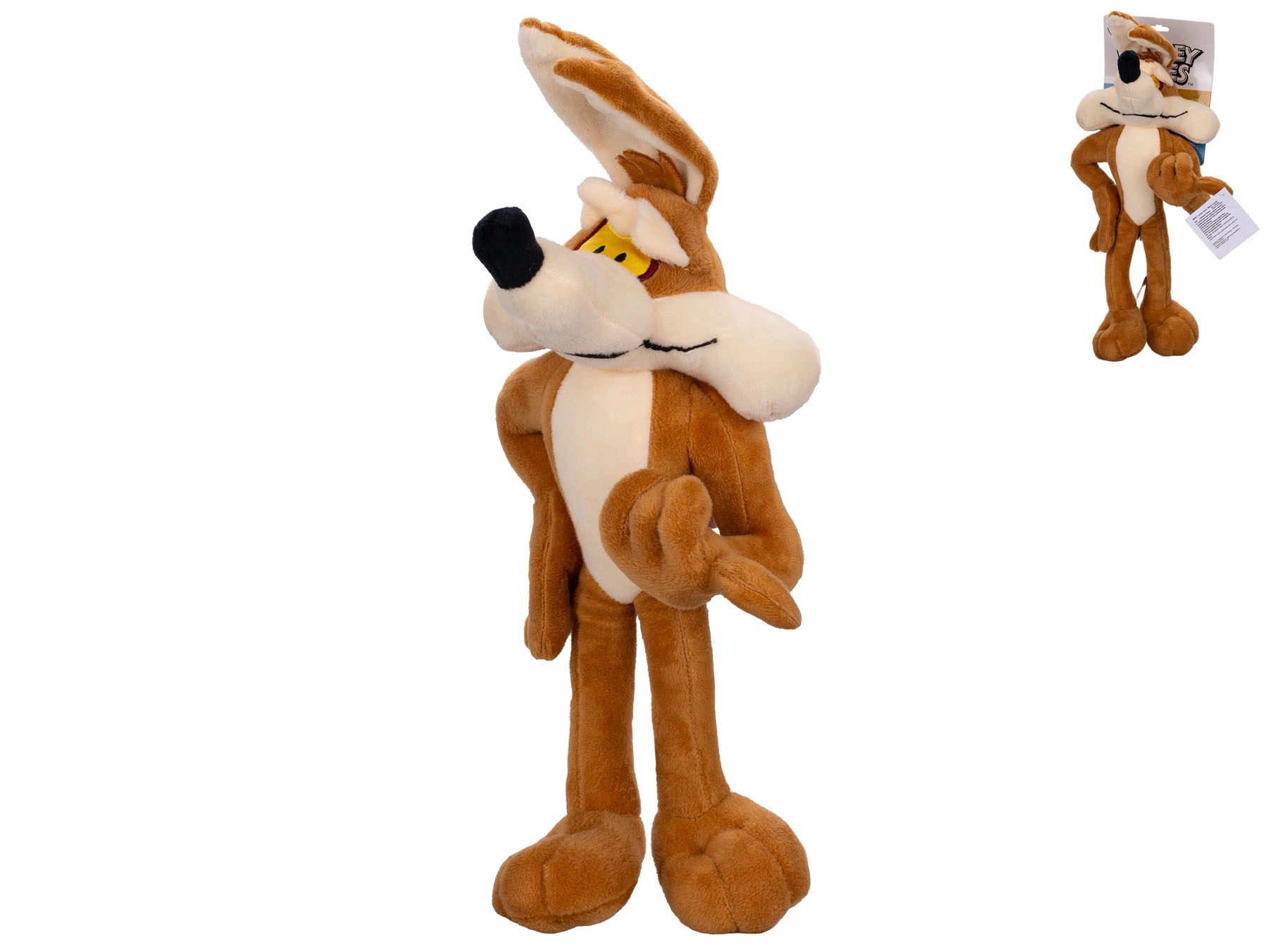 Varázsold a klasszikus rajzfilmek hangulatát a gyerekszobába a WILE E. COYOTE plüssel. Ez a pihe-puha barát selymes plüssből készült, és 40 cm-es méretének hála kényelmesen tartható a karban. Az autentikus részletek a LOONEY TUNES kicsi és nagy rajongóit egyaránt elbűvölik.