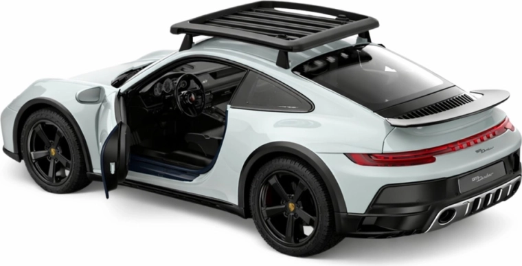 A kidolgozott beltér, a valósághű fényszórók és az aerodinamikus vonalak kiemelik a Porsche 911 Dakar modell hitelességét.