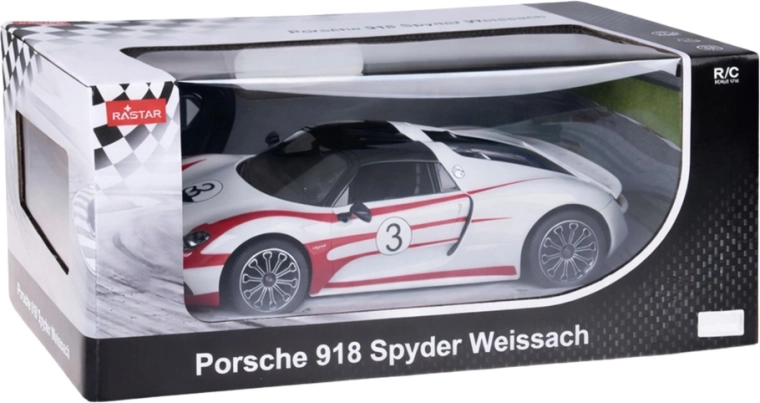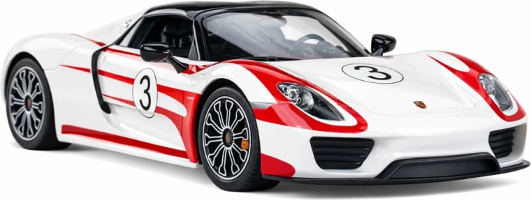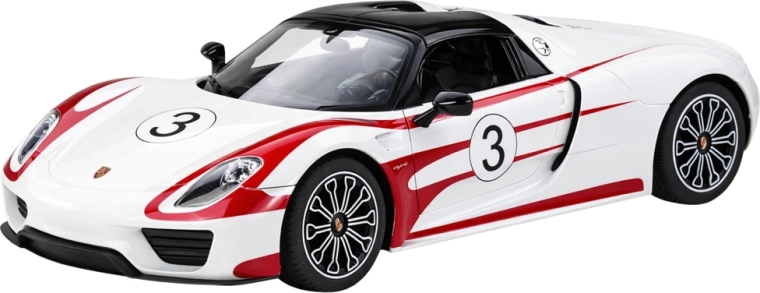 Ez a licencelt Porsche 918 Spyder Weissach modell fehér színben, piros versenycsíkokkal hűen tükrözi a legendás szupersportautót – az aerodinamikus karosszériától a részletesen kidolgozott cockpitig. A minőségi műanyag és a masszív mechanikus alkatrészek tartósságot és hosszú élettartamot biztosítanak.