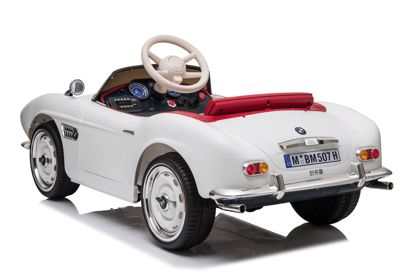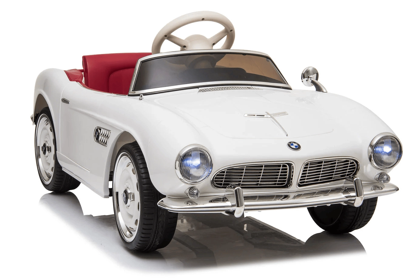 Stílusos, licencelt BMW gyermek elektromos kisautó elegáns fehér színben. Kínál realista dizájnt, 2,4 GHz-es szülői távirányítást, lágy indulást, EVA kerekeket a csendes haladáshoz és kényelmes bőr ülést. A első és hátsó lámpák, valamint az MP3/USB/TF csatlakozóval ellátott multimédiás panel révén a gyerekek biztonságosan és vidáman utazhatnak.
