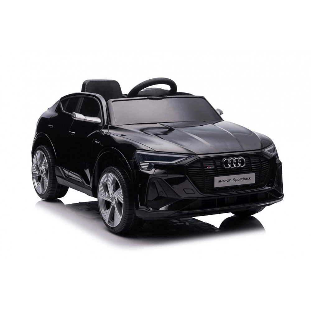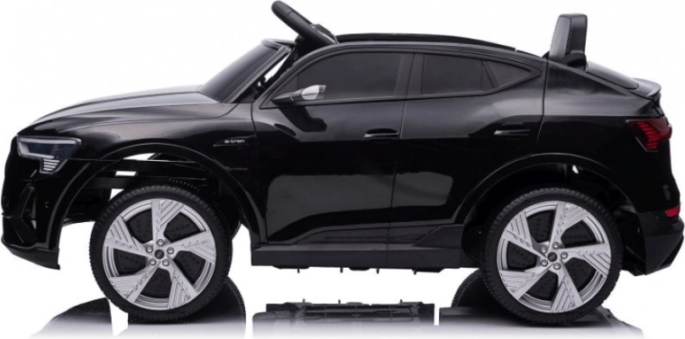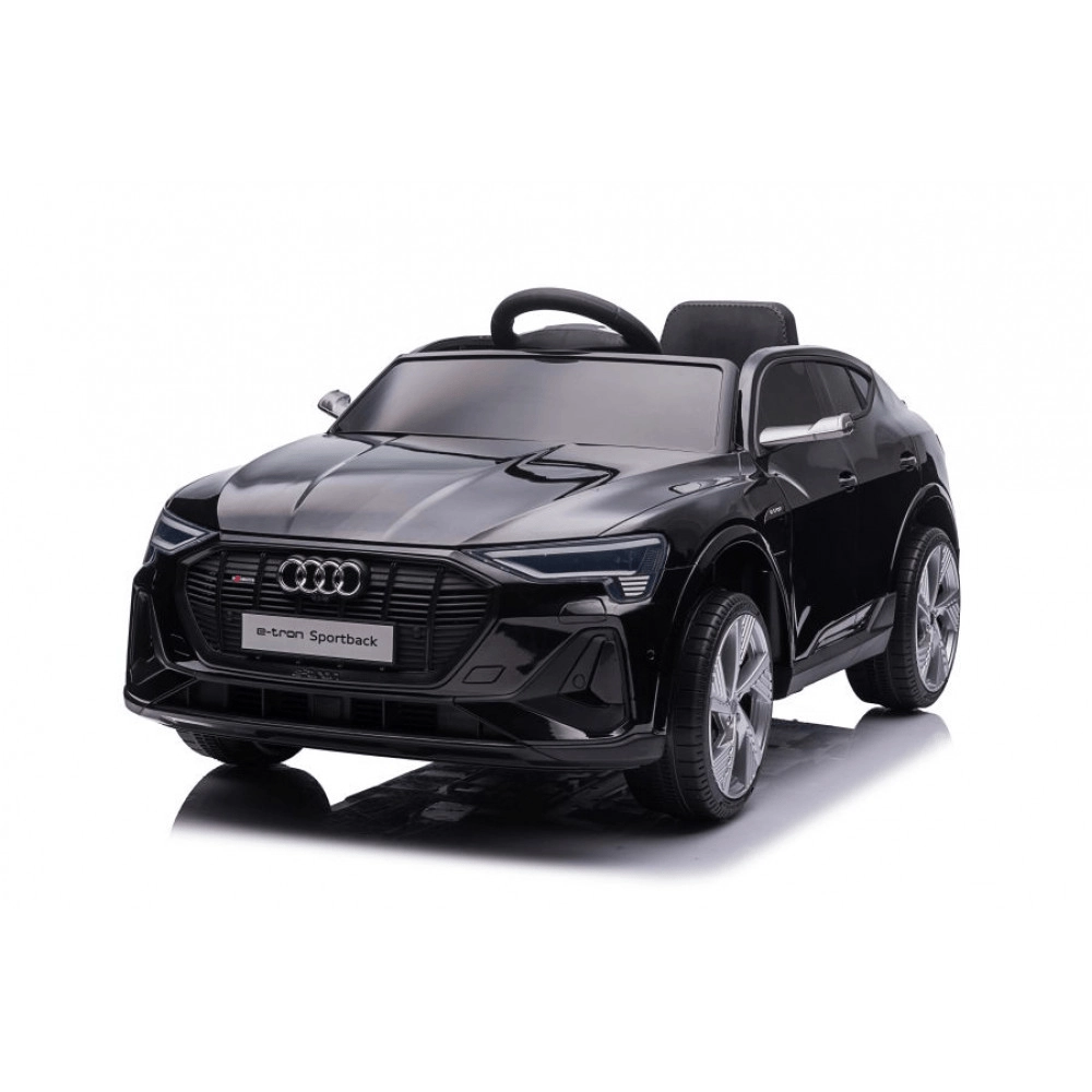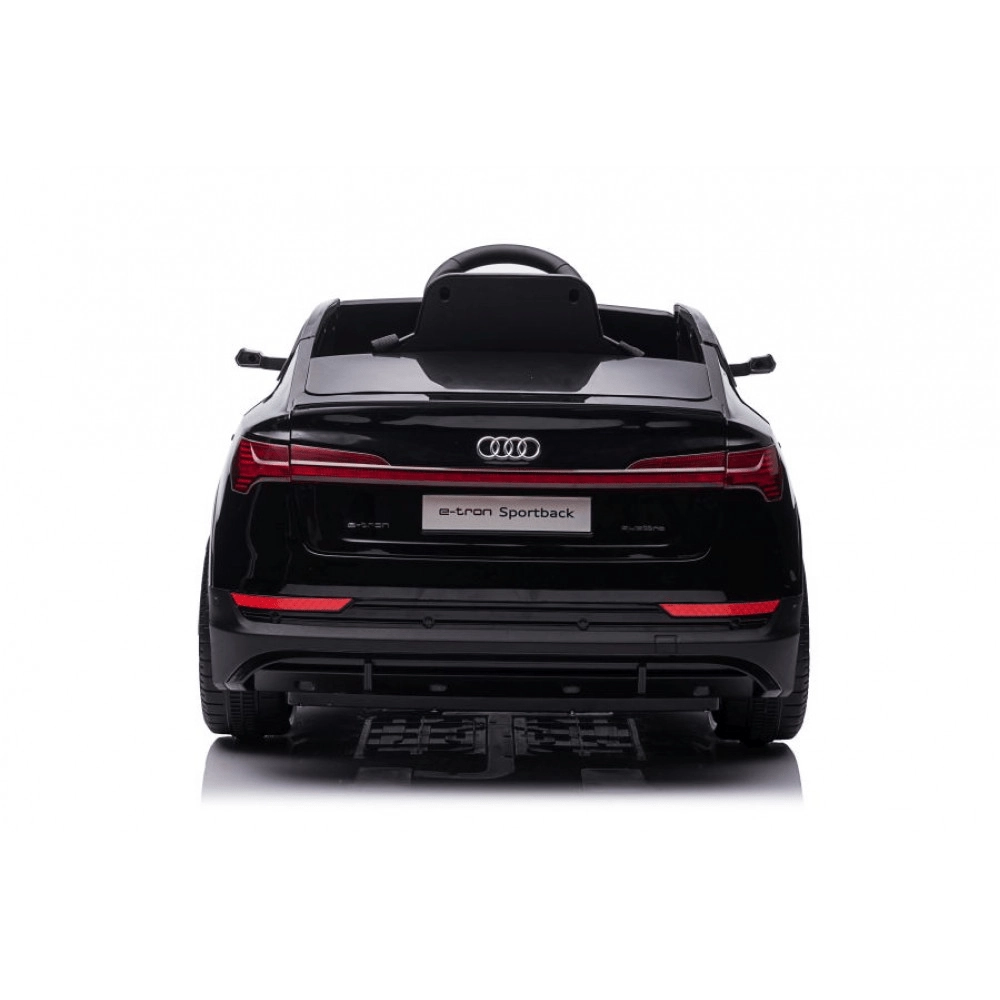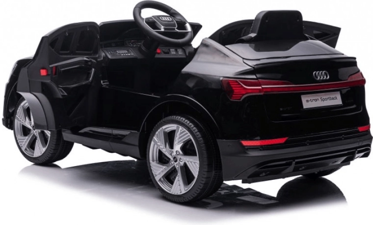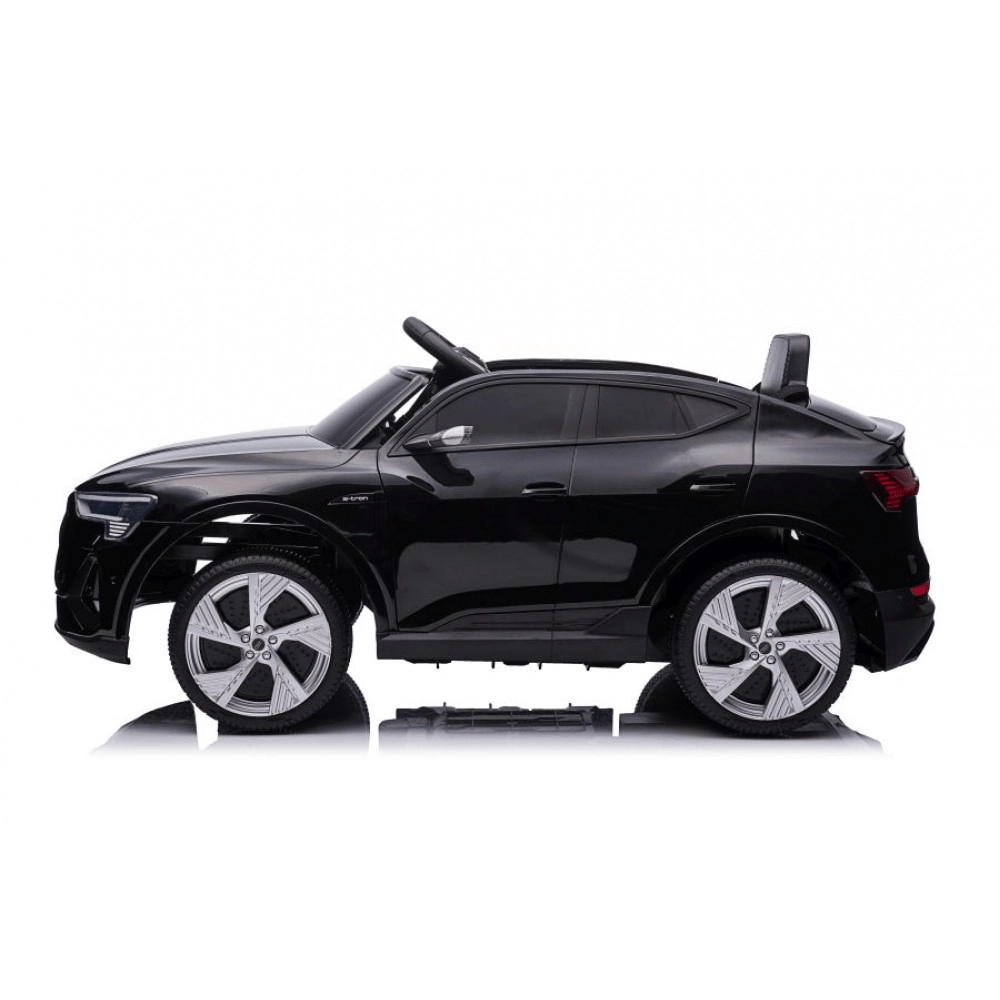 Stílusos elektromos AUDI e-tron Sportback gyerekautó elegáns fekete színben, élethű megjelenéssel, biztonságos lassú indulással és szülői 2,4 GHz-es távirányítóval. Kínál előre- és hátramenetet, nyitható ajtókat, 4 kerekes felfüggesztést és gazdag multimédiás felszereltséget (fények, zene, MP3/USB/TF).