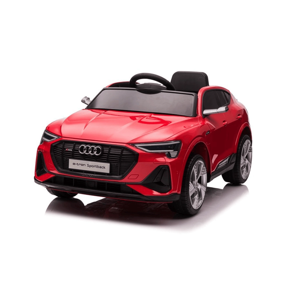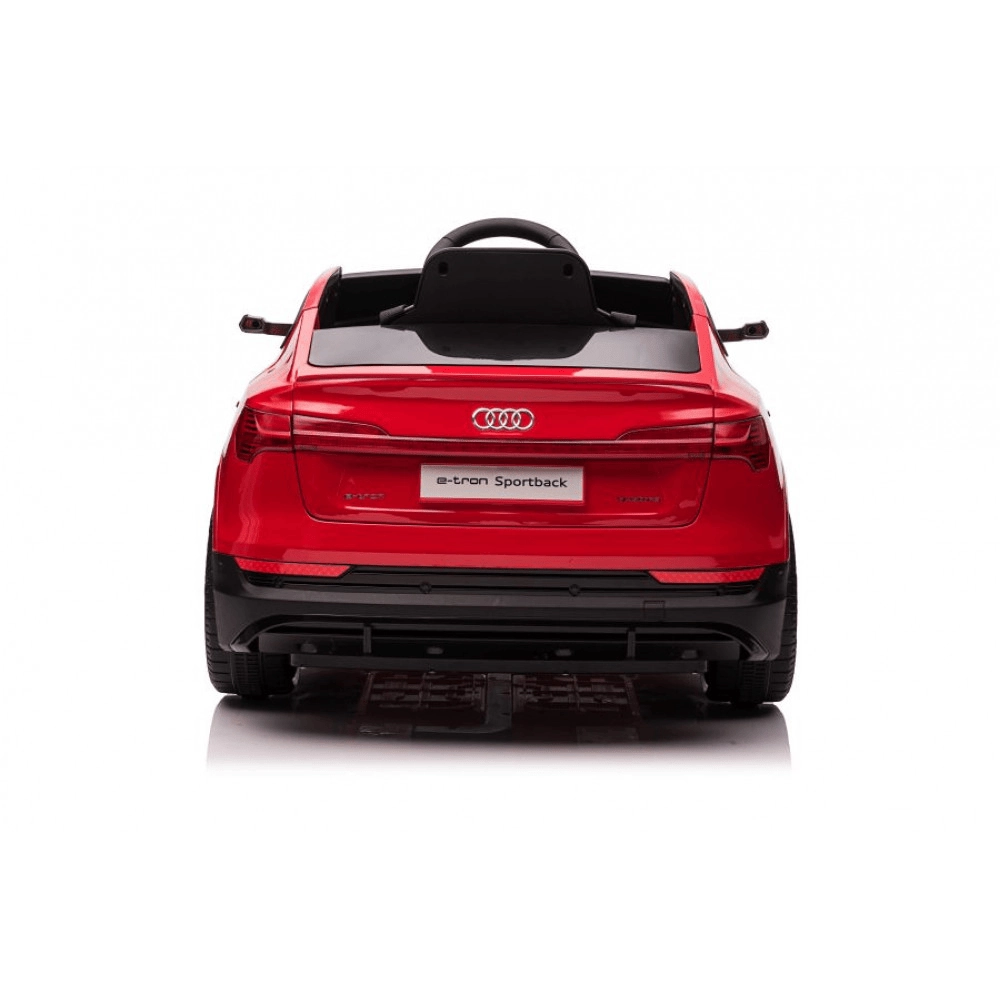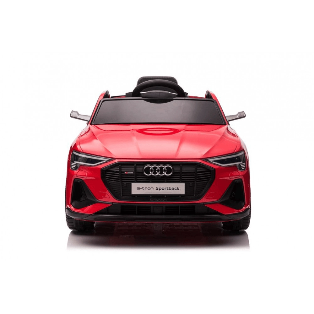 Stílusos elektromos gyermekautó, a AUDI e-tron Sportback vonzó piros színben, összkerékhajtással (4×30 W), fokozatmentes indulással és megállással, 2,4 GHz-es szülői távirányítóval és LED világítással. Nyitható ajtók, 4 pontos felfüggesztés és multimédiás panel USB/MP3/TF bemenetekkel – biztonságos és szórakoztató vezetés kb. 3 éves kortól.