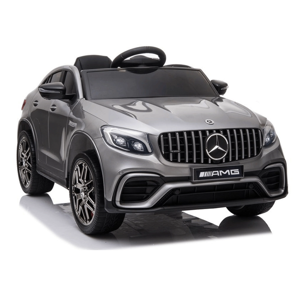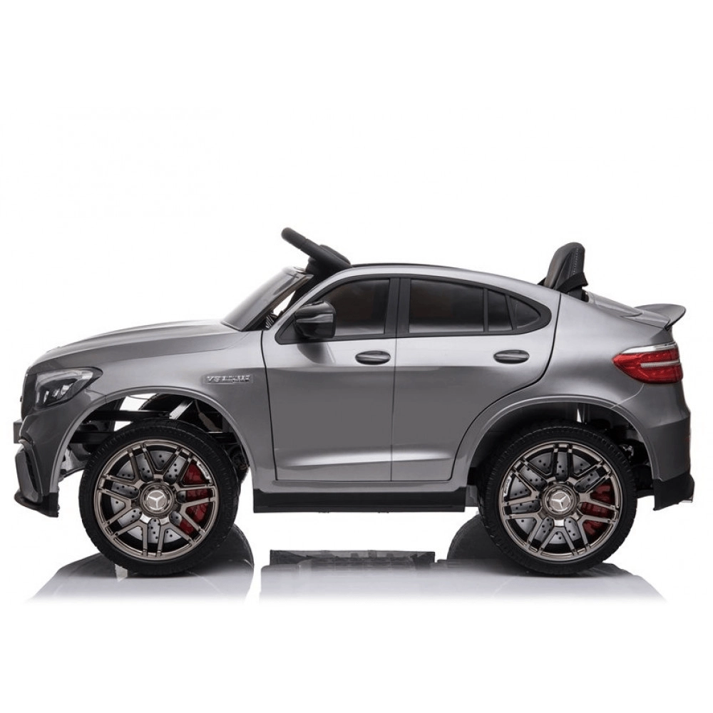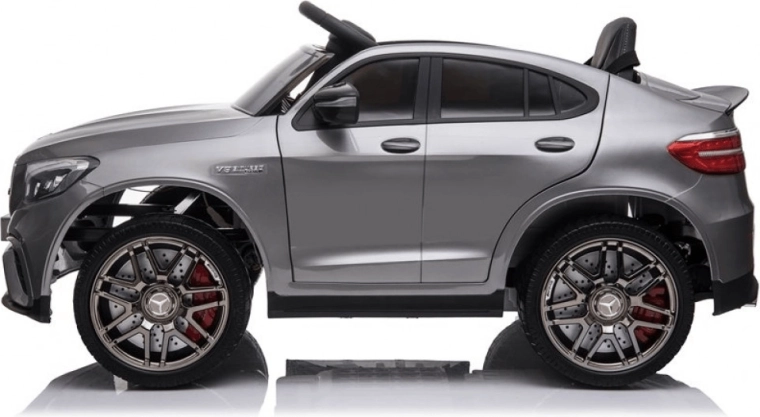 Az autók kis rajongói imádni fogják a szürke elektromos kisautót a MERCEDES‑AMG GLC 63 S Coupe stílusában. A valósághű karosszéria-részletek, a LED-effektek és a minőségi anyagok (strapabíró PP műanyag, bőr ülés, EVA kerekek) kényelmet és vonzó megjelenést biztosítanak. A max. 3–5 km/h sebességnek köszönhetően a vezetés biztonságos és egyenletes.