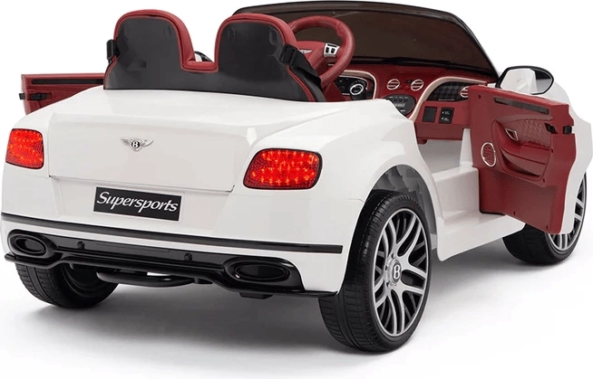 A fehér színű BENTLEY Supersports elektromos gyerekautó valósághű megjelenést és biztonságos szórakozást kínál. Két erős, 35 W-os motorja és a 2 × 6 V 7 Ah akkumulátor egyenletes haladást biztosít kb. 3–6 km/h sebességgel, különböző felületeken.